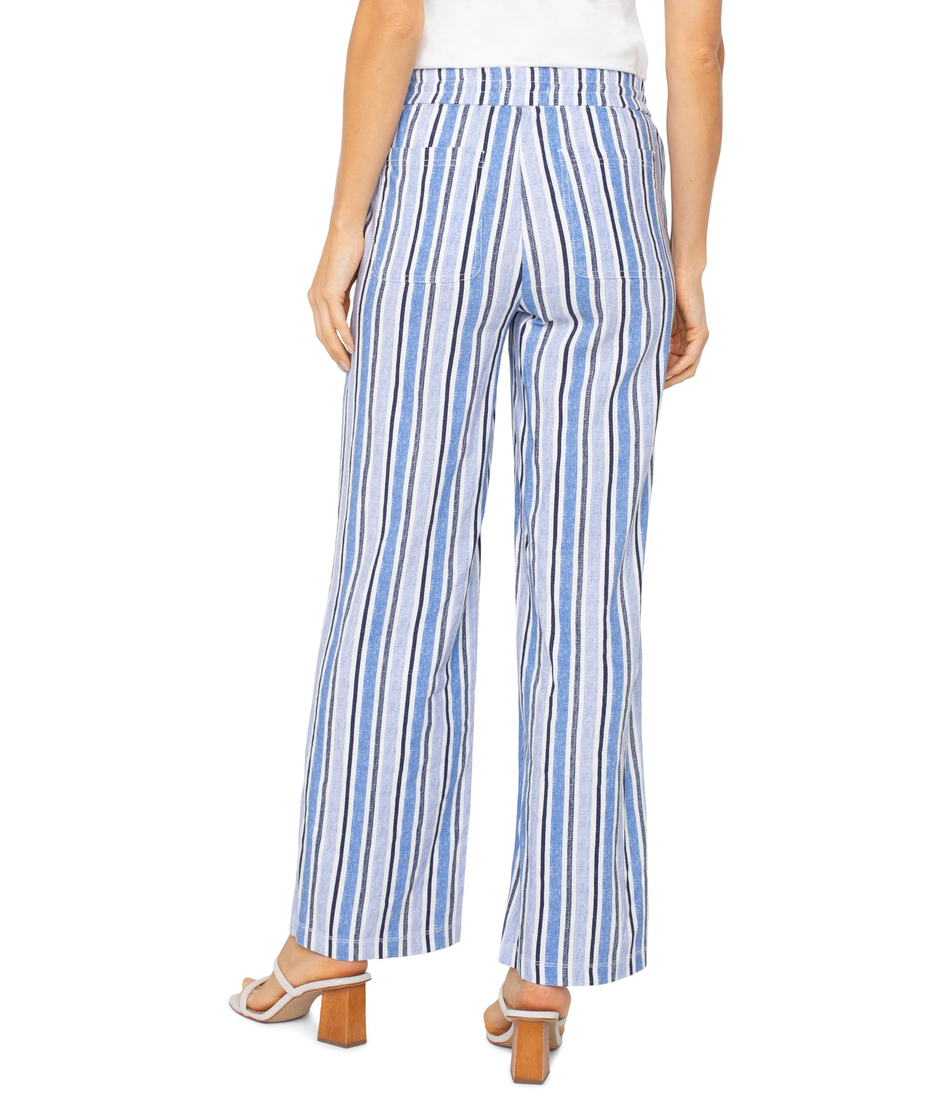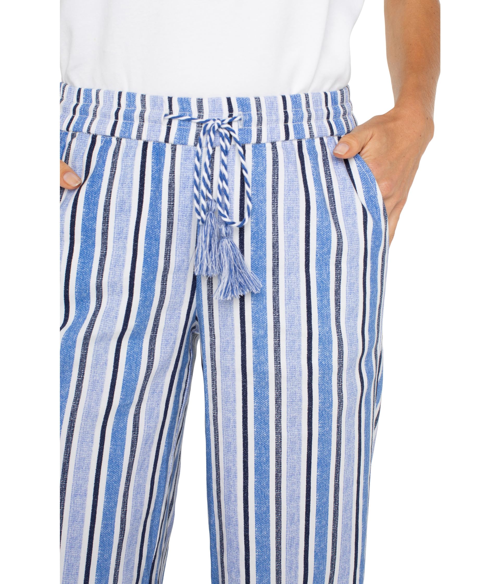 Брюки Liverpool Los Angeles Pull-On Drawstring Waist Band Wide Leg, White Blue Multi Stripe