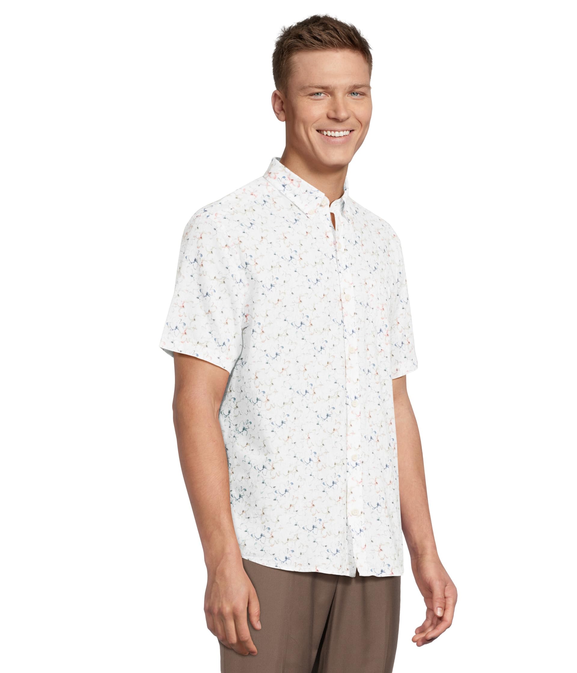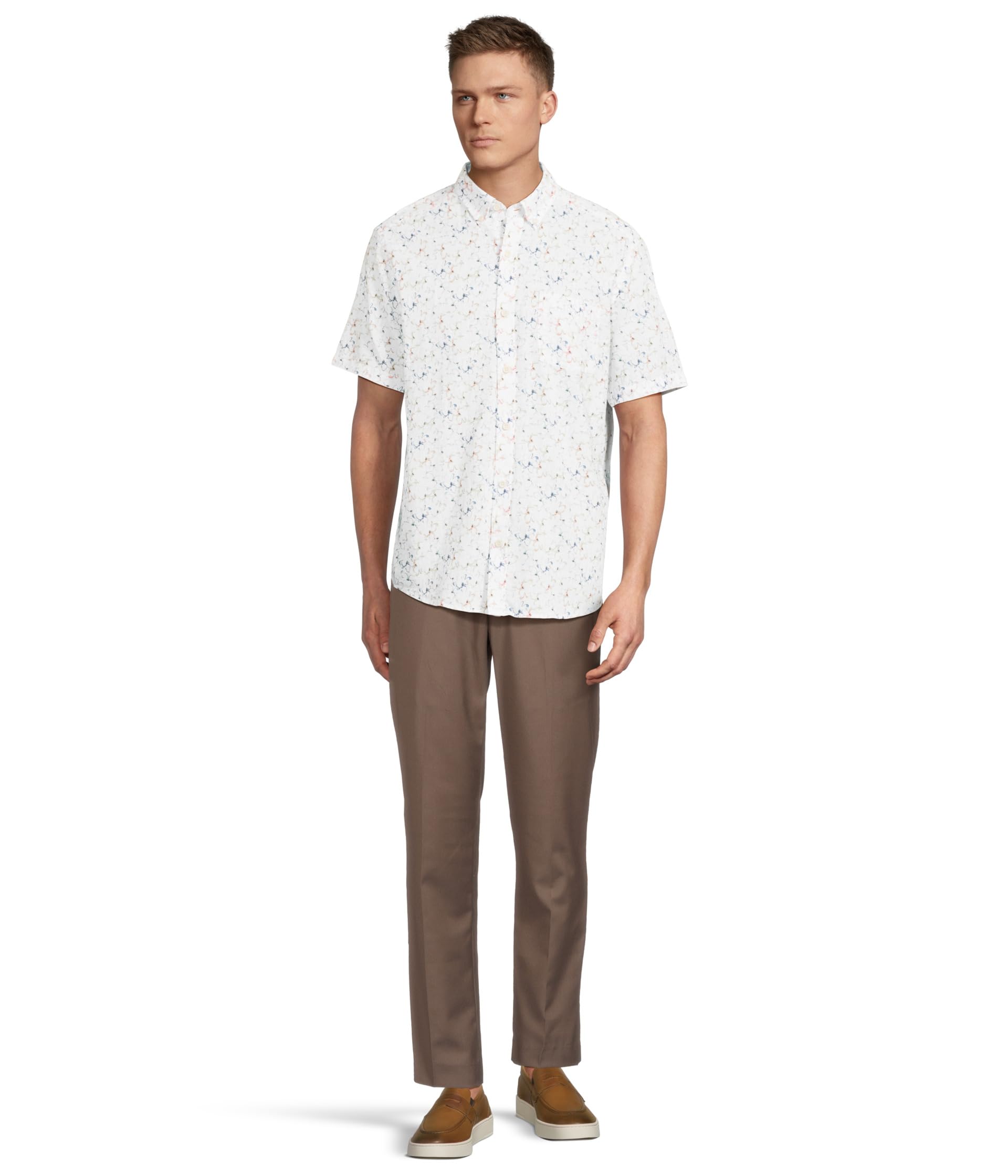 Рубашка Johnston & Murphy Short Sleeve Floral Print Linen Shirt, White Multi
