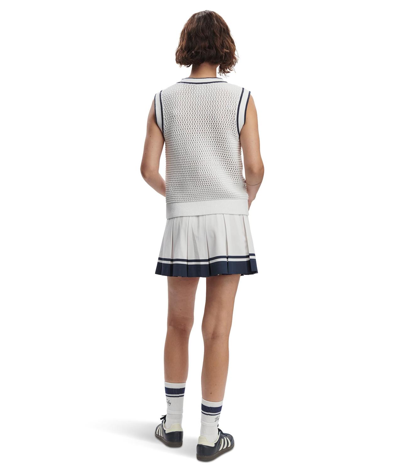 • Подчеркните свой образ, надев майку с V-образным вырезом отVarleyLeilani. Эта активная и элегантная майка изготовлена из хлопчатобумажной поли-трубчатой пряжи современной вязки крючком. Накладные карманы и контрастная окантовка на планке и проймах придают ей классическую клубную элегантность. V-образный вырез, дизайн без рукавов, застежка на пуговицы спереди и рубчатый низ завершают образ.