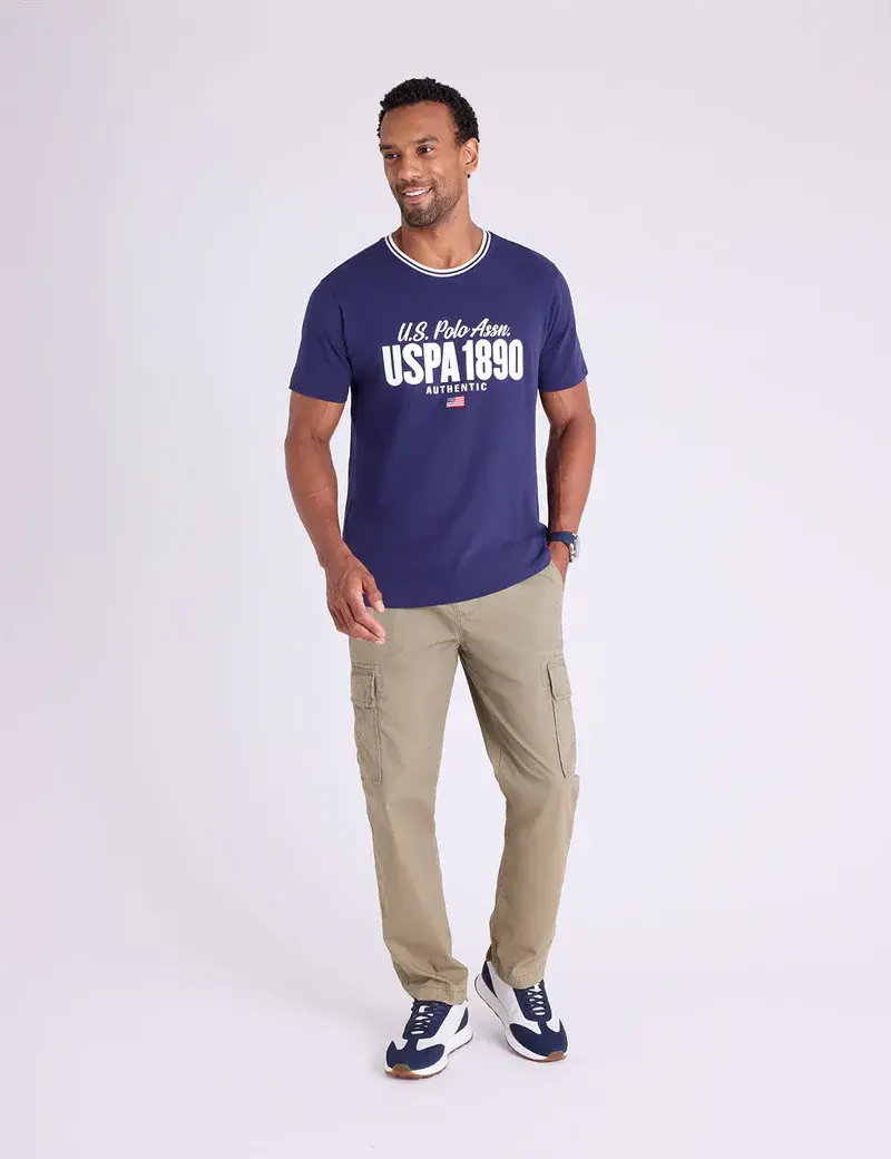 Футболка с надписью Script Wordmark Graphic T-Shirt станет вашим любимым повседневным аксессуаром. Эта футболка с крупной надписью US Polo Assn. USPA 1890 и блочным логотипом на груди станет ярким акцентом, обеспечивая при этом максимальный комфорт. Изготовленная из мягкого хлопкового трикотажа, она лёгкая, дышащая и идеально подходит для повседневного ношения. В сочетании с джинсами, шортами или джоггерами эта классическая футболка с круглым вырезом привнесёт в ваш гардероб элементы настоящей американской спортивной моды.