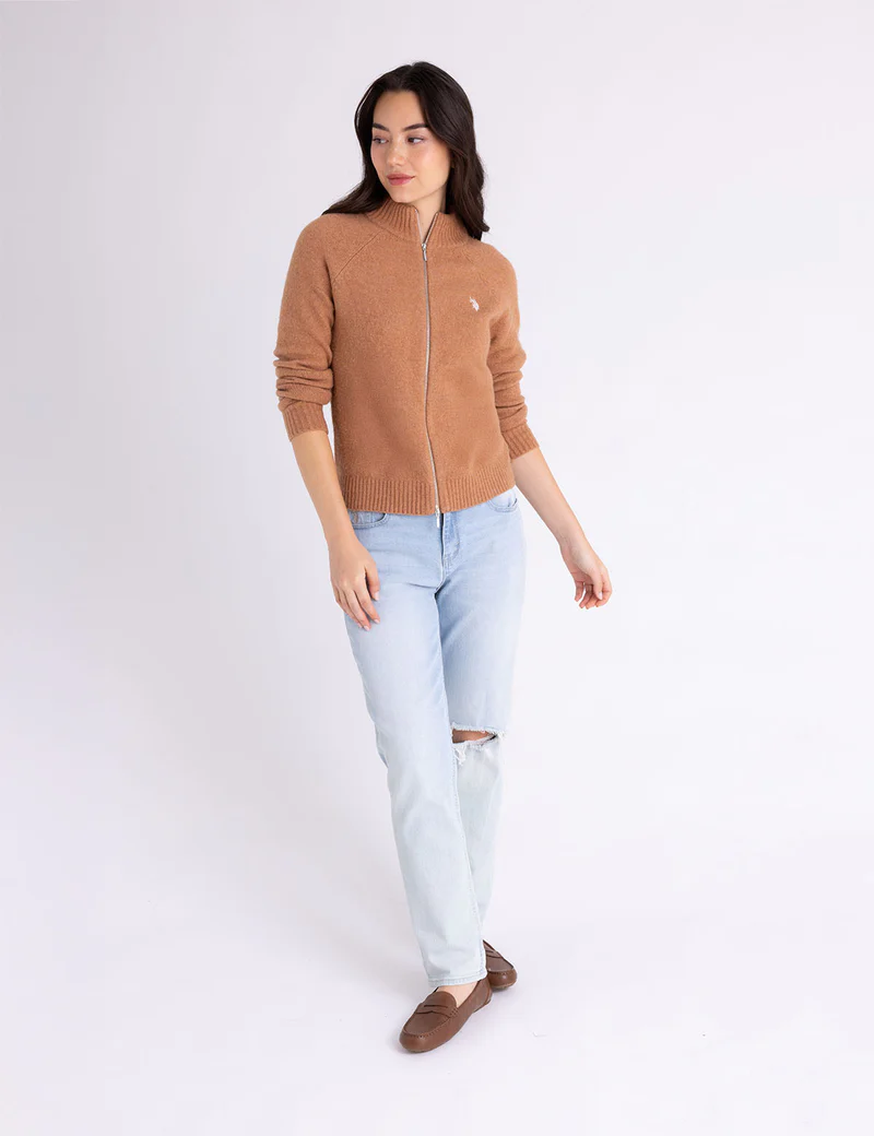 Непринужденный стиль и повседневный комфорт в кардигане с воротником-стойкой и застежкой-молнией от US Polo Assn. Этот кардиган, выполненный в теплом мокко-муссовом оттенке , станет отличным дополнением к многослойному образу, который вы будете носить из сезона в сезон. Вырез-стойка и ребристая отделка добавляют элегантности, а молния во всю длину делает его универсальным: его можно носить расстегнутым поверх футболки или застегнуть для дополнительного тепла. Украшенный вышитым логотипом с двумя всадниками, этот кардиган — вневременная базовая вещь с изысканным стилем.