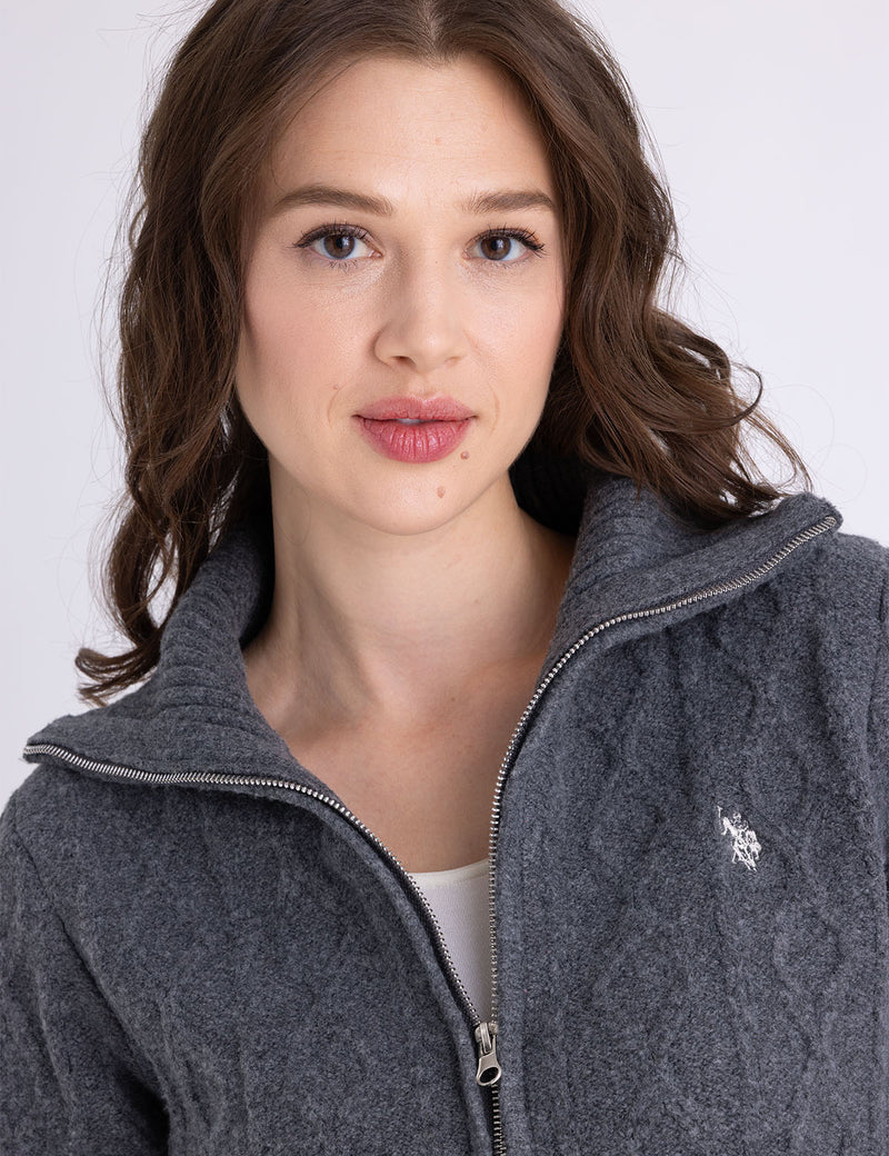 Свитер с косами на молнии – классическая косичная вязка с современной лёгкостью.