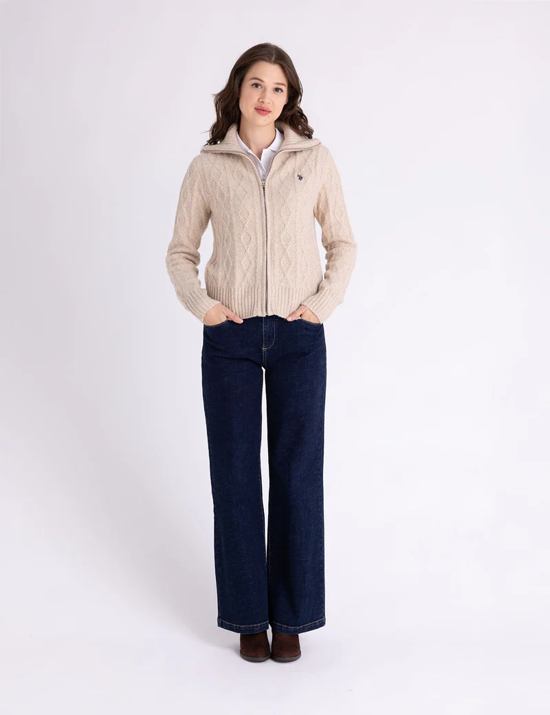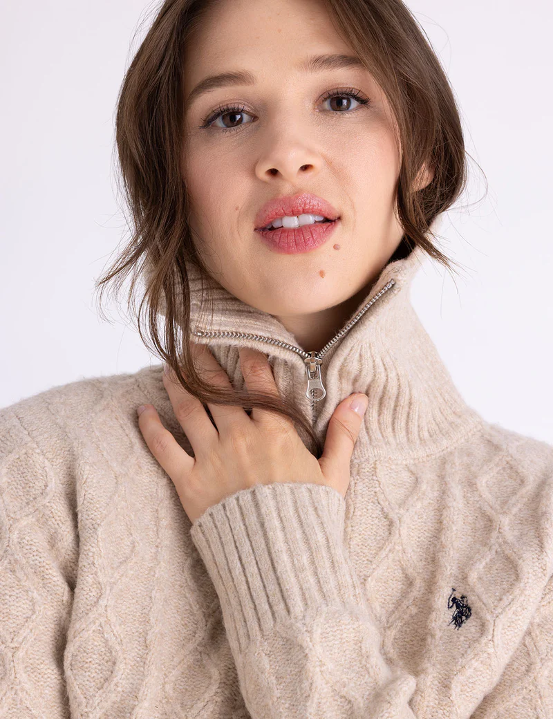 Свитер с косами на молнии – классическая косичная вязка с современной лёгкостью.
