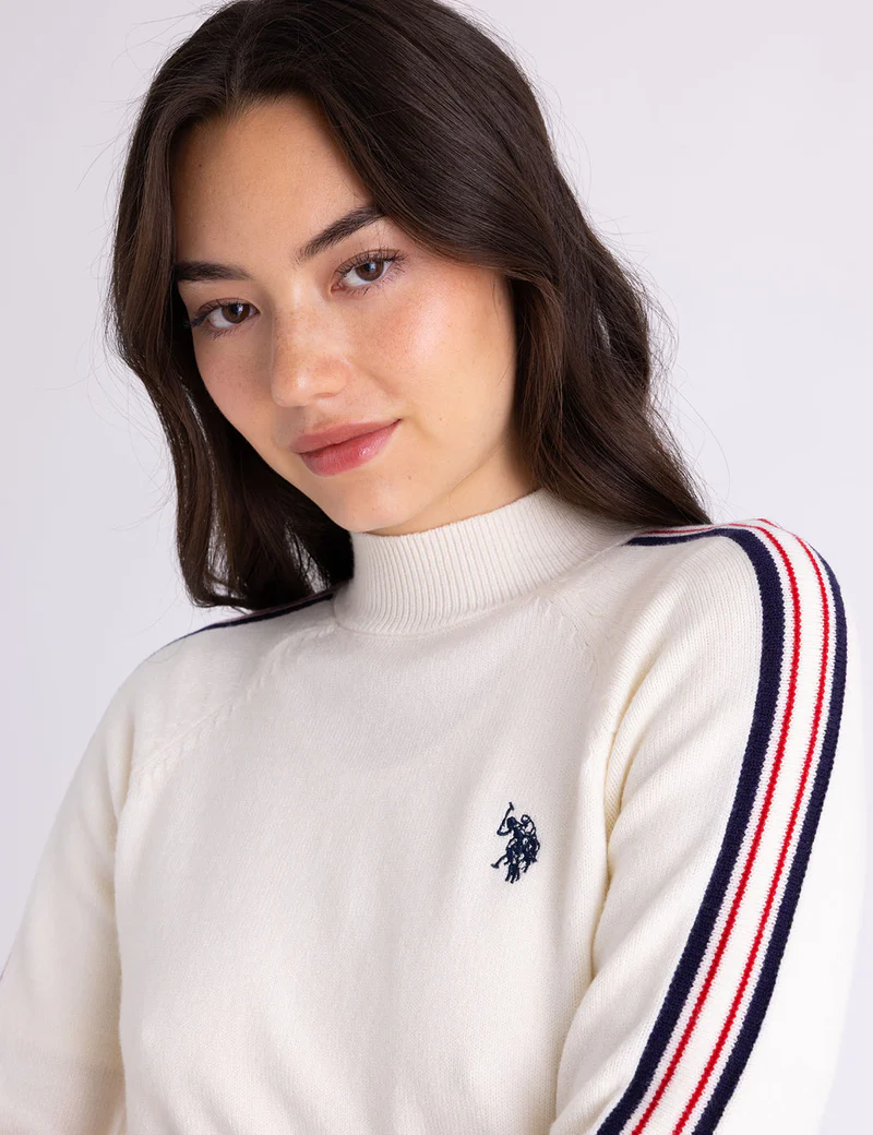 Свитер с воротником-стойкой в полоску Signature Stripe – спортивное наследие, повседневный комфорт.