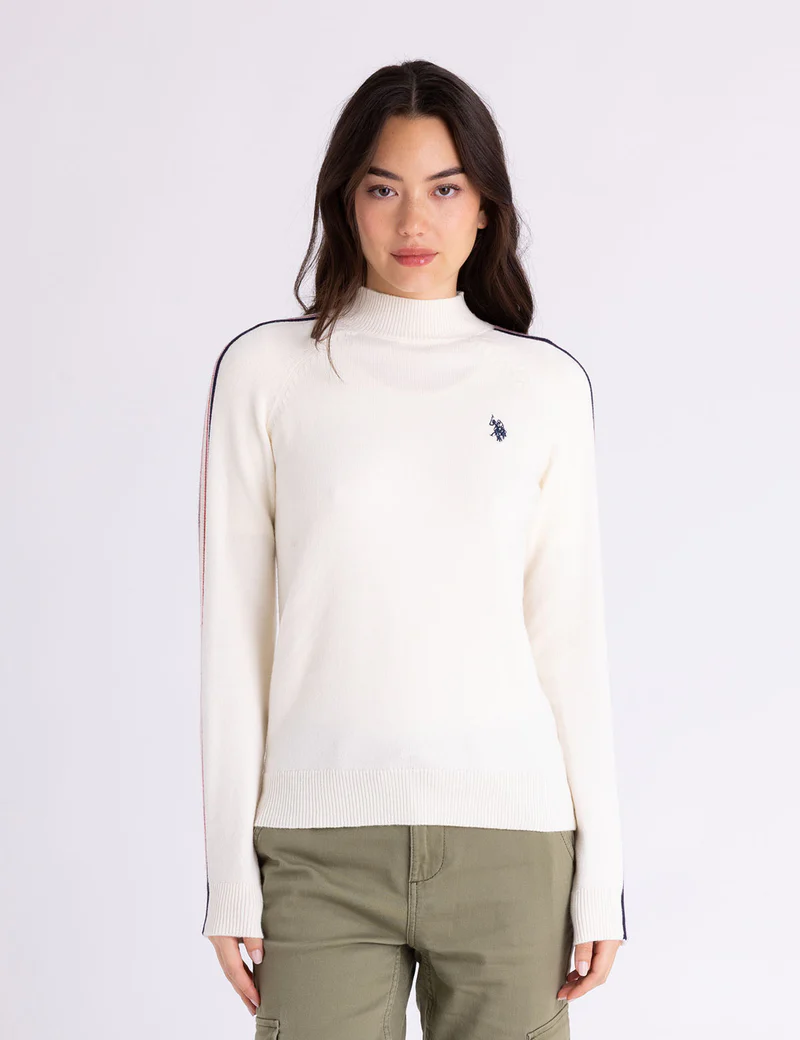 Добавьте новизны в свой повседневный образ с помощью свитера Signature Stripe Raglan Mock Neck от US Polo Assn. Этот элегантный трикотаж сочетает в себе классический стиль и современные спортивные детали, включая яркие фирменные полосы, спускающиеся по рукавам , что придает ему спортивный шик. Рукава реглан обеспечивают свободную и комфортную посадку, а ребристый воротник и отделка сохраняют элегантный силуэт. Этот универсальный свитер с вышитым логотипом в виде двух всадников подойдет на любой сезон.