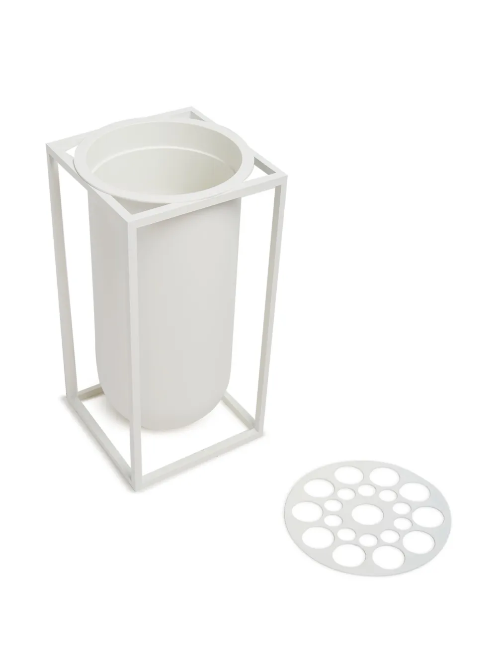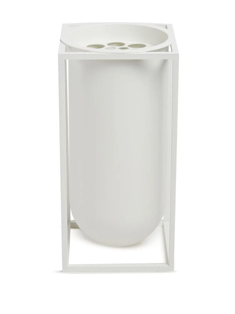 Белый, металл, матовое покрытие, дизайн с открытым верхом и геометрическая форма.