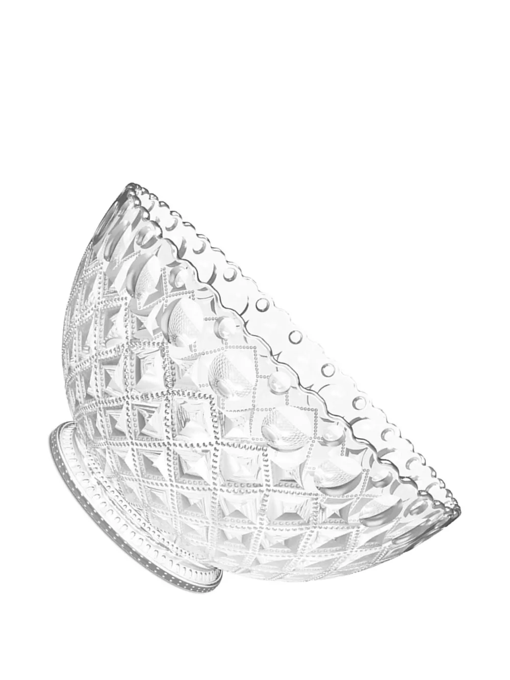 прозрачный, с бриллиантовым узором, бусинами, зубчатым краем, на ножке-подставке, с тиснёным рисунком