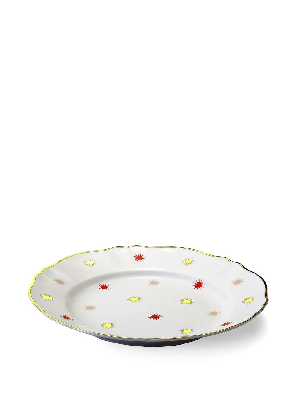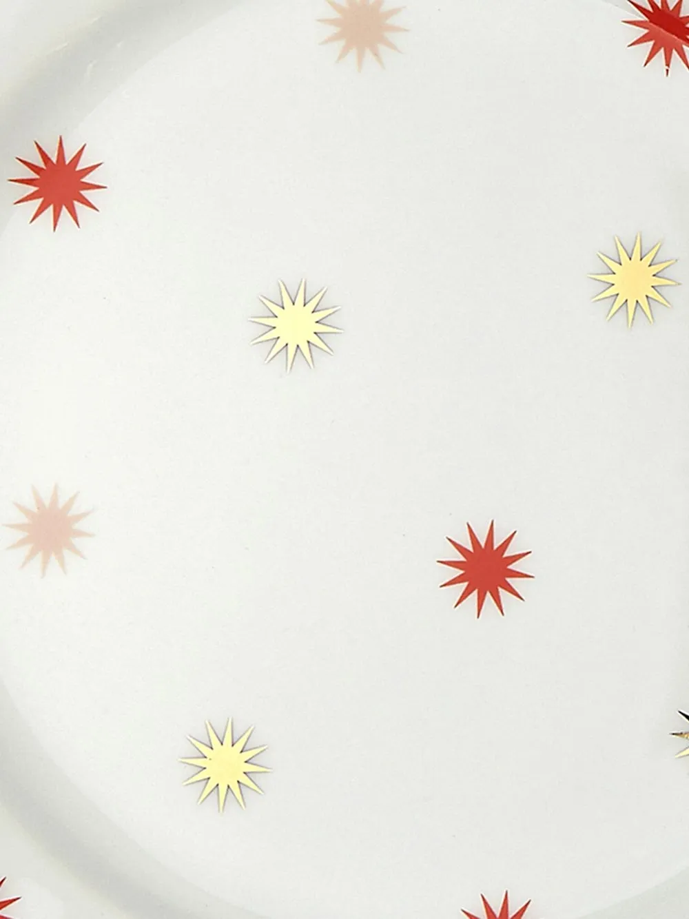 Белый/разноцветный, фарфор, принт с изображением звезд, асимметричные края, подходит для мытья в посудомоечной машине и набор из четырех предметов.