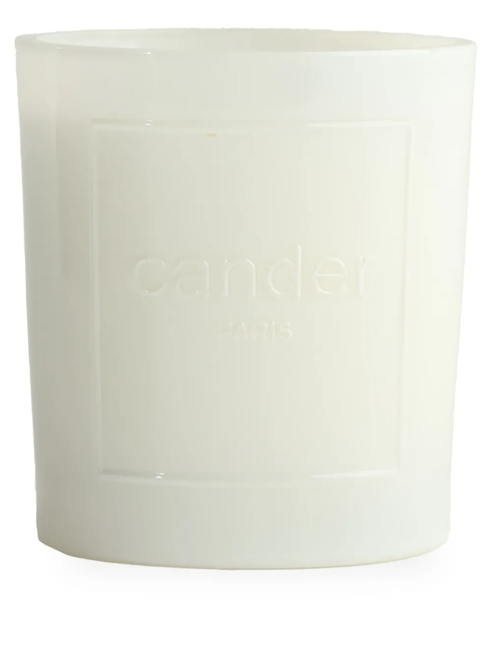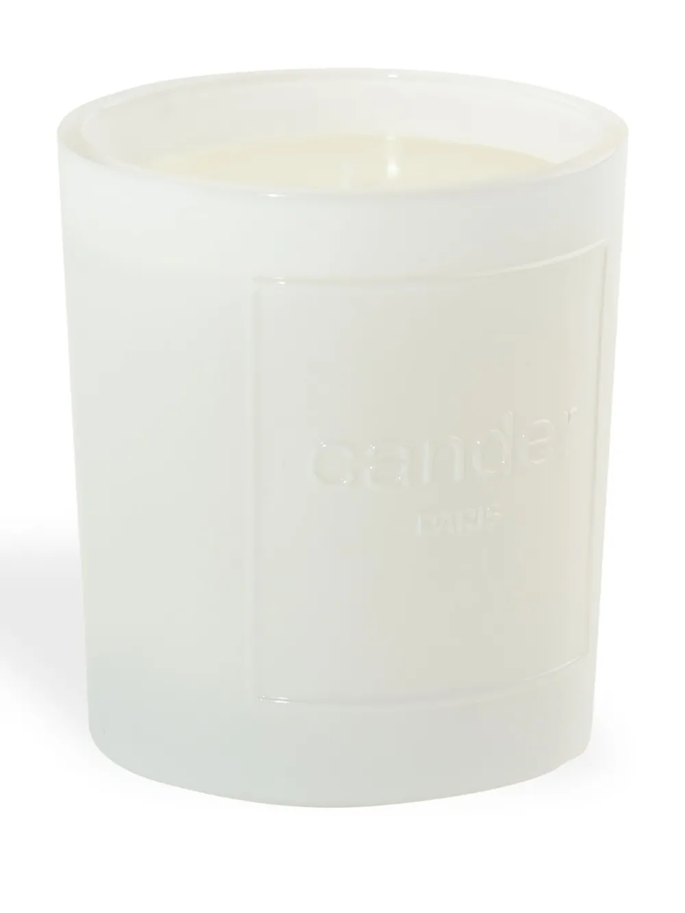 Кремовый, воск, стекло, глазурованное покрытие, тисненый логотип спереди, фитиль из хлопка и 60 часов горения.