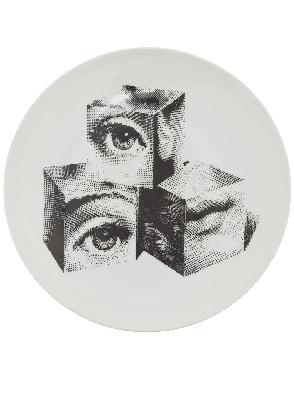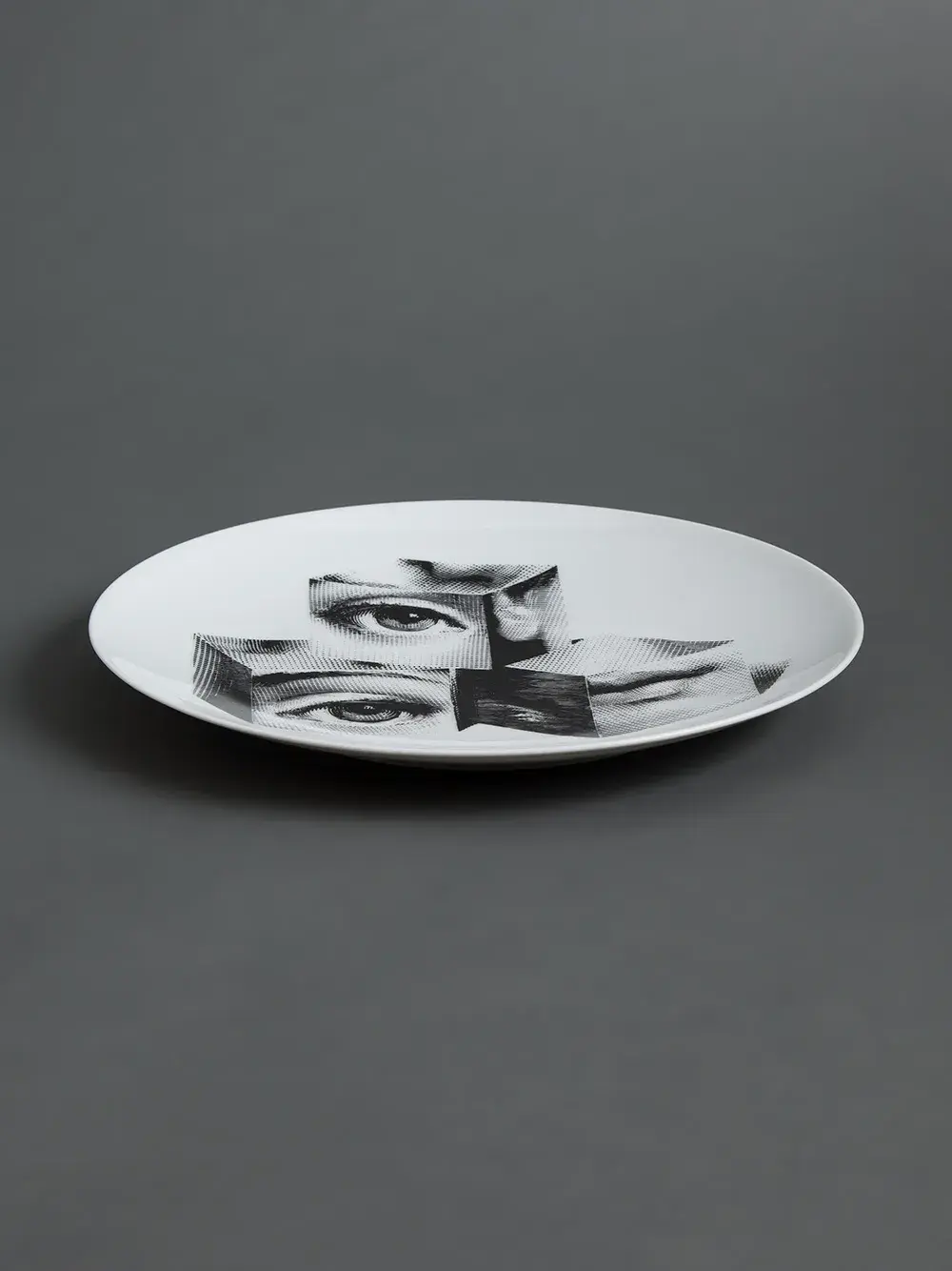Белая с серым керамическая тарелка с рисунком от Fornasetti.