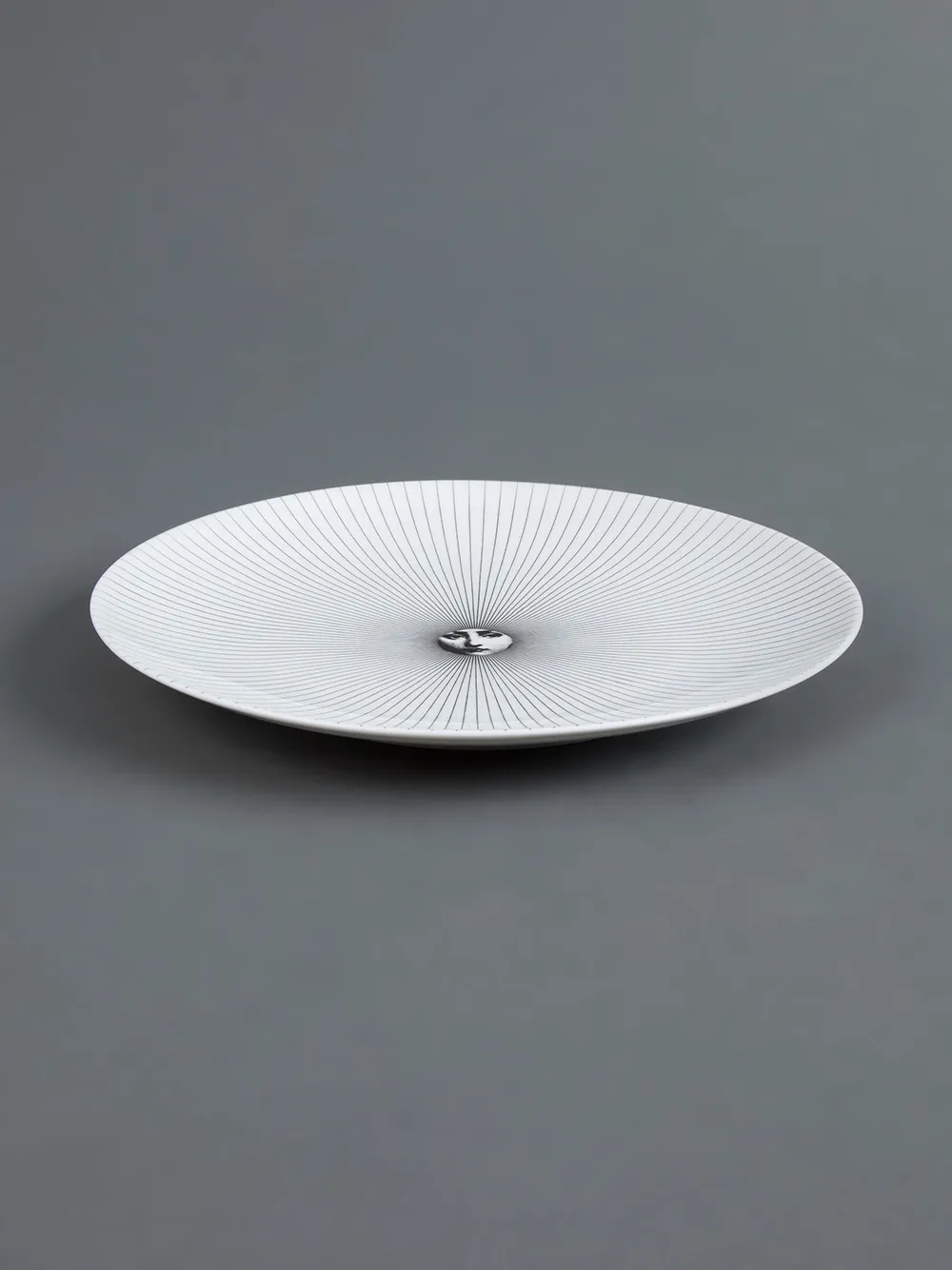 Чёрно-белая фарфоровая тарелка с принтом от Fornasetti.