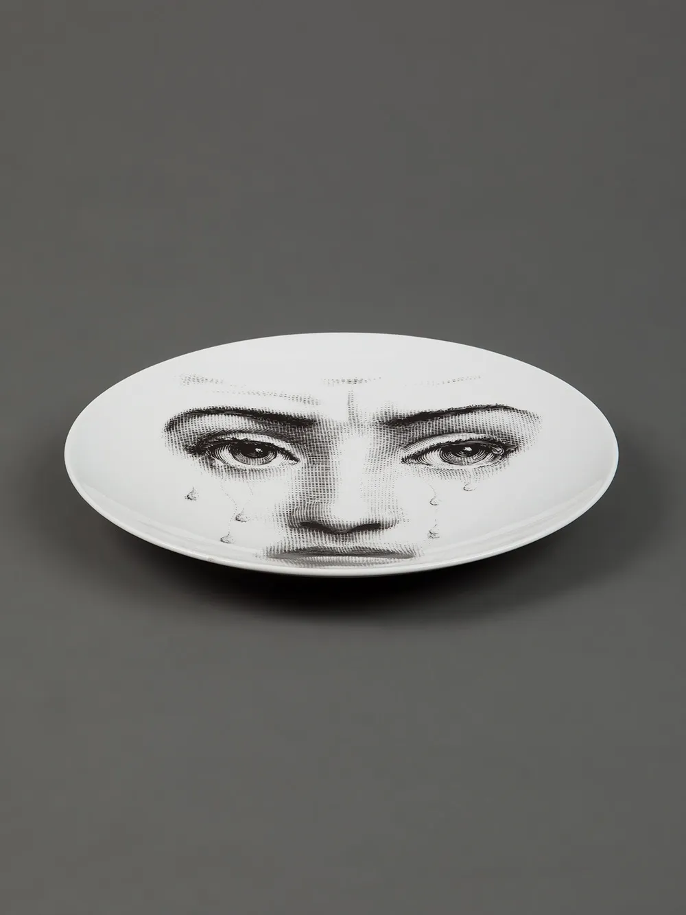 Чёрно-белая фарфоровая тарелка с рисунком от Fornasetti.