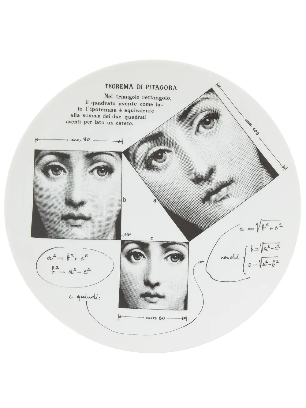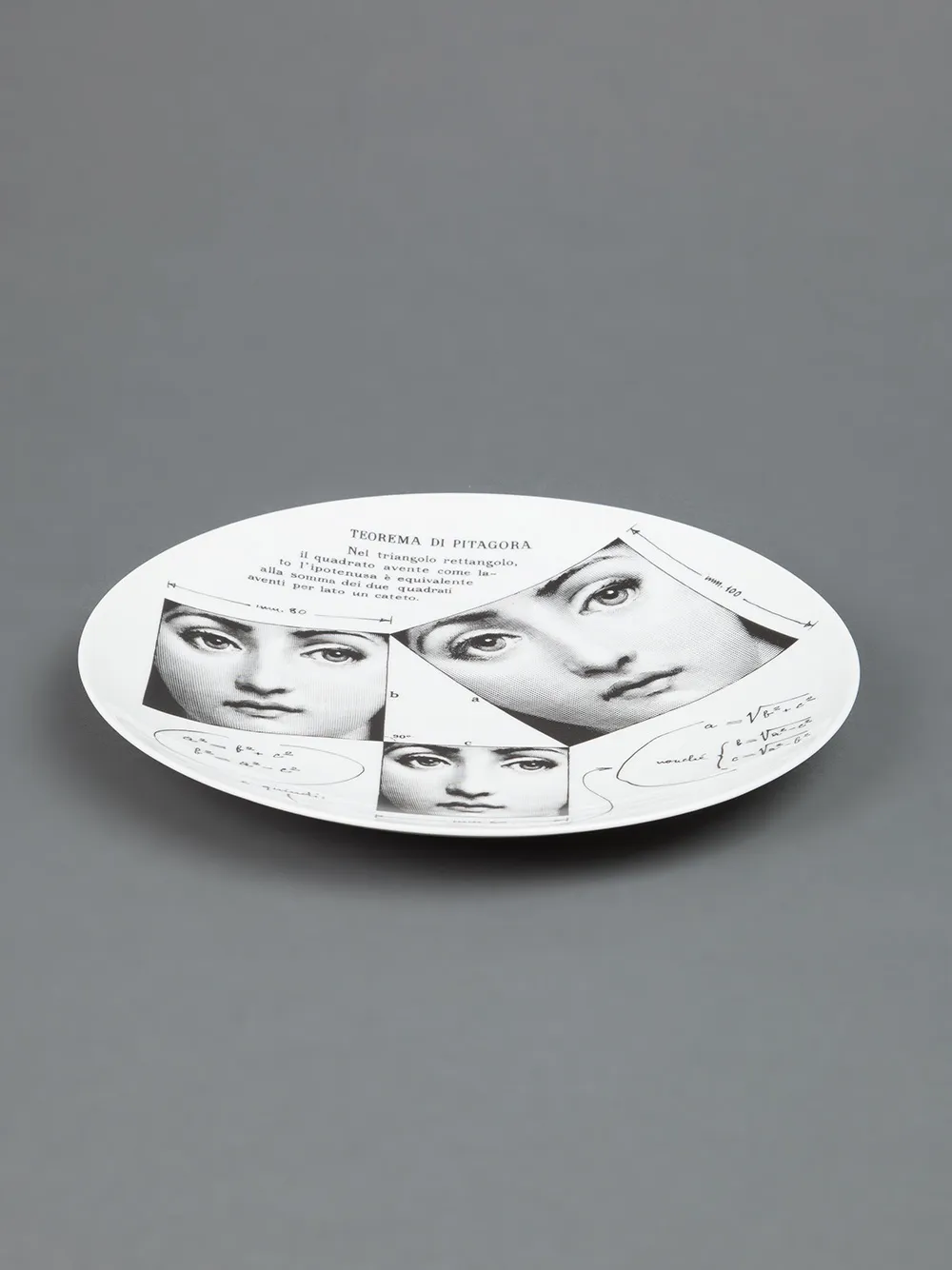 Белая керамическая тарелка с принтом от Fornasetti.