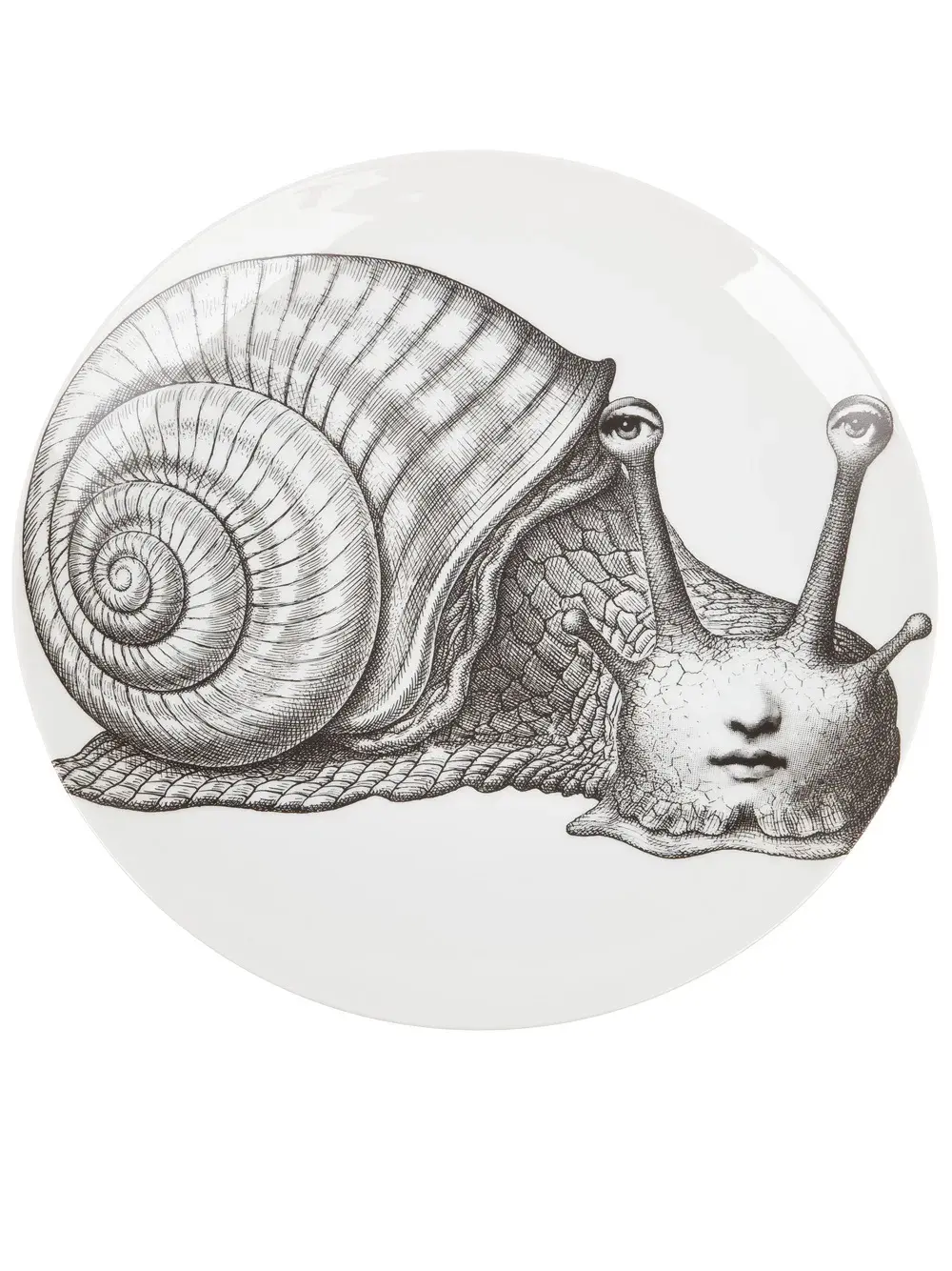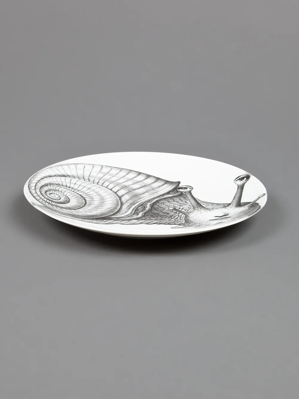 Белая с серым керамическая тарелка с рисунком от Fornasetti.