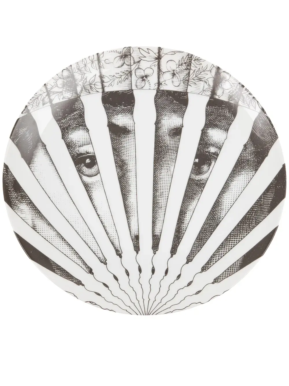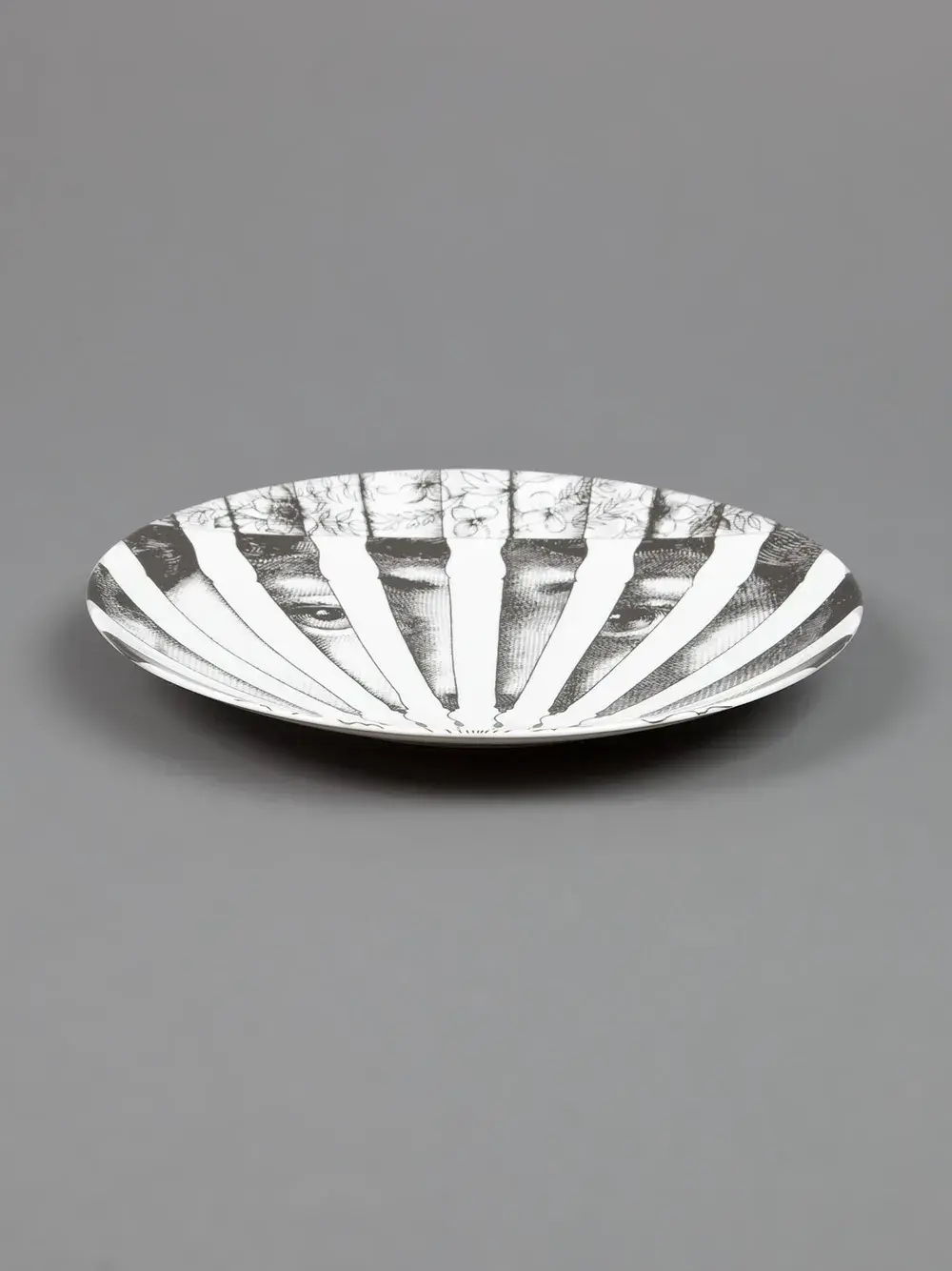 Чёрная с белым керамическая тарелка с рисунком от Fornasetti.