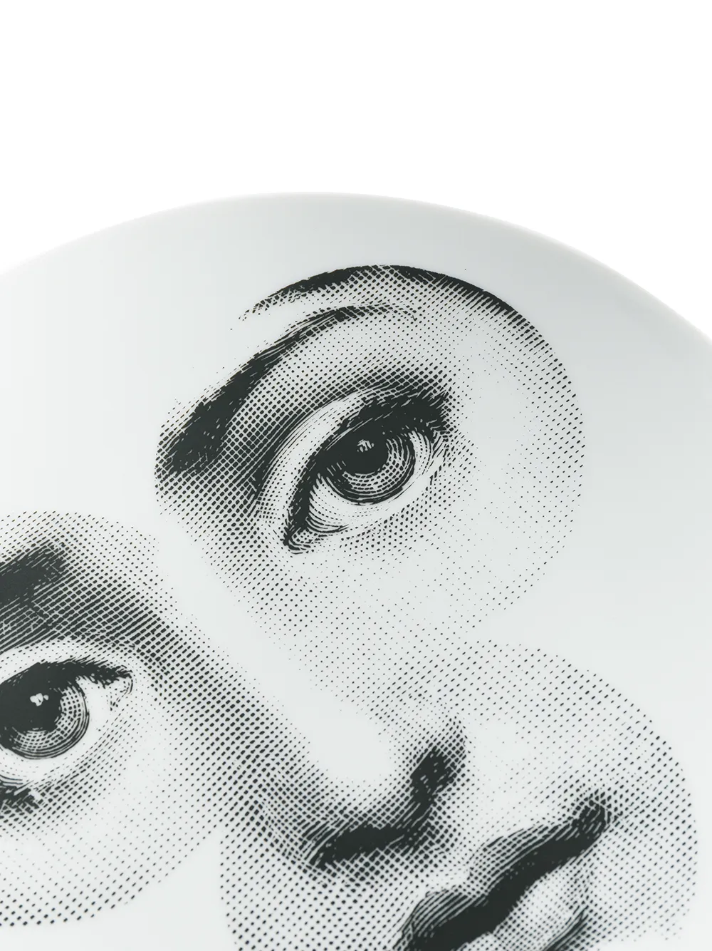 Белая керамическая тарелка с принтом от Fornasetti.