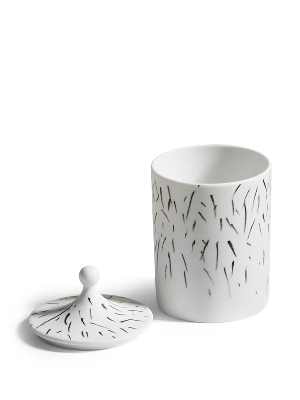 Черный/белый, фарфор, абстрактный принт, ручная роспись, цилиндрическая форма и крышка.