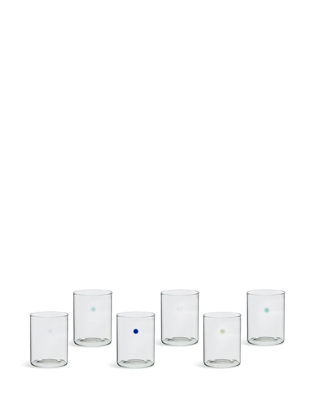 Белый/разноцветный, стекло, прозрачные линзы, принт в горох, цилиндрический дизайн и набор из шести предметов.