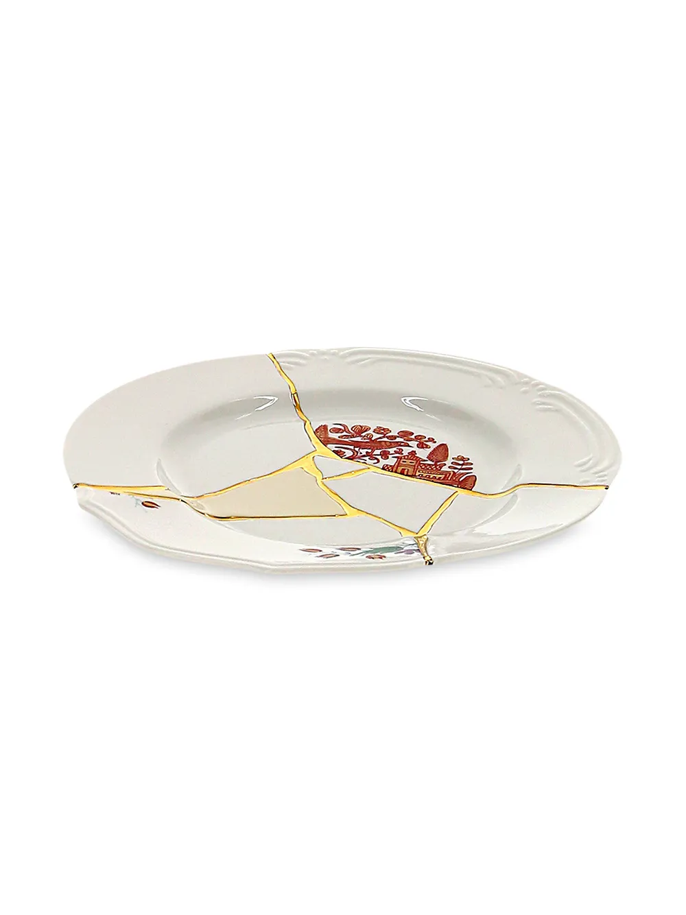 Тарелка с эффектом трещин от Seletti. Цветочный узор. Цвет: белый.
