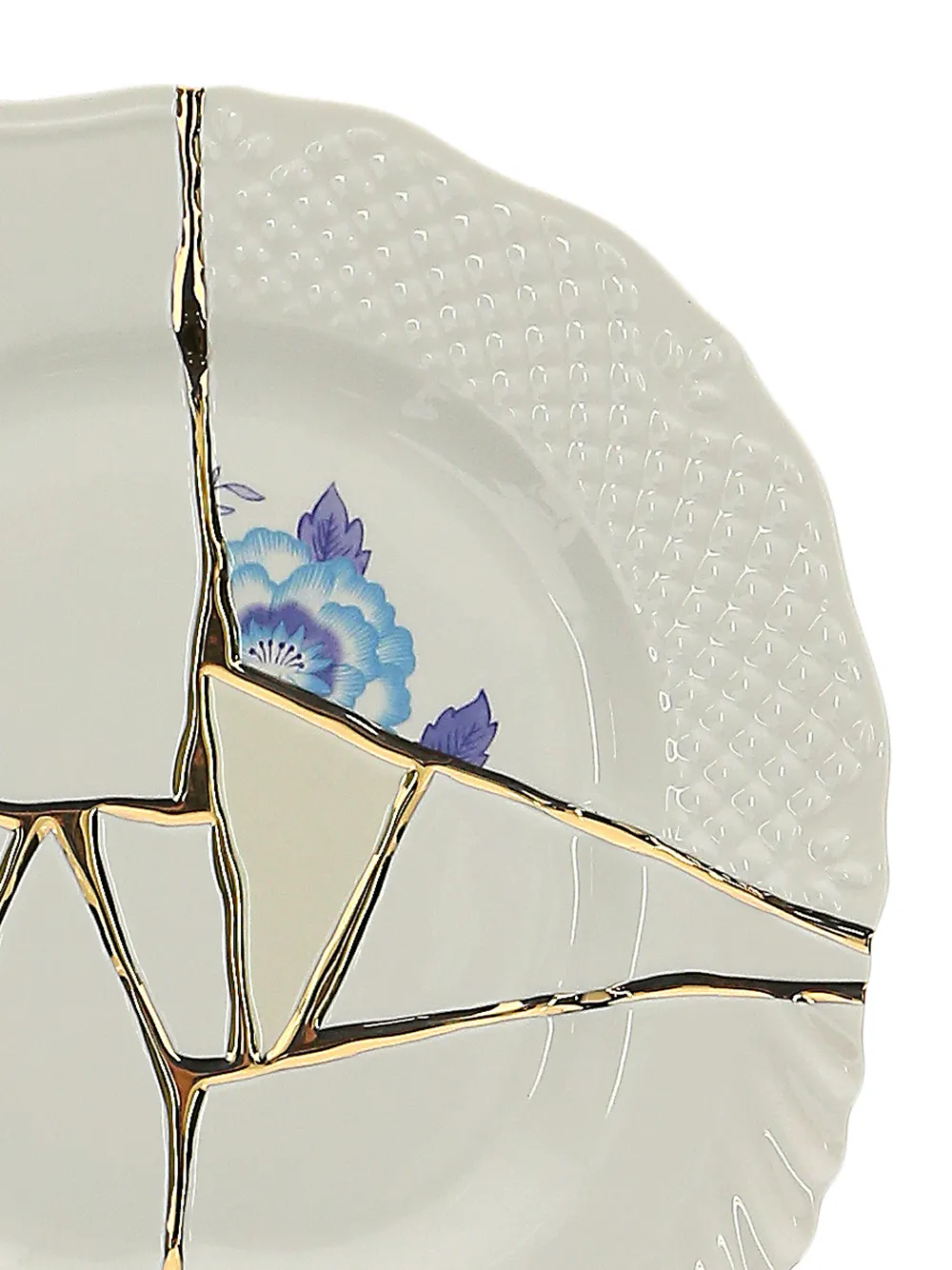 Тарелка с эффектом трещин от Seletti. Цветочный узор. Цвет: белый.