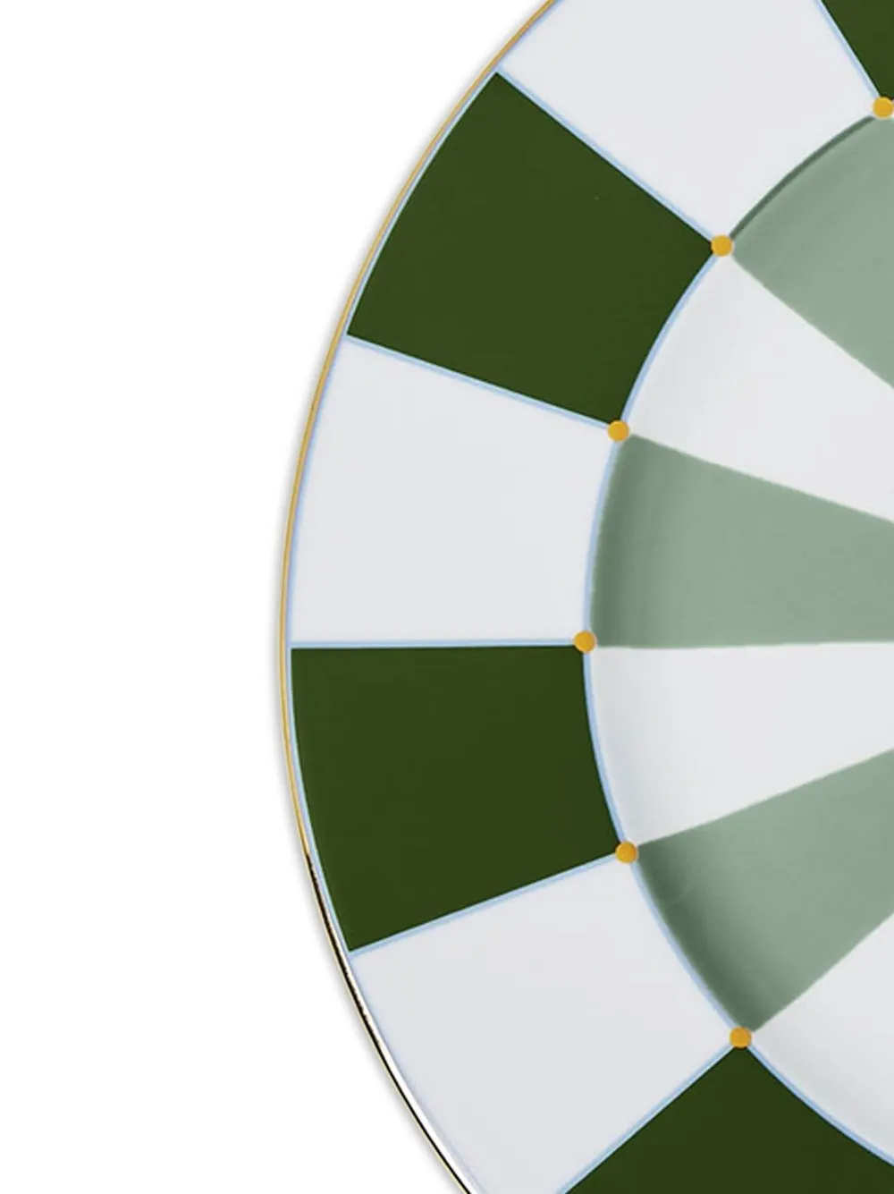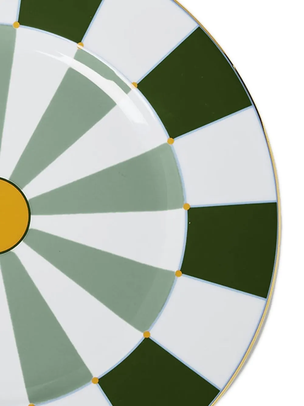 Зеленый, белый, фарфор, геометричные вставки и круглая форма.