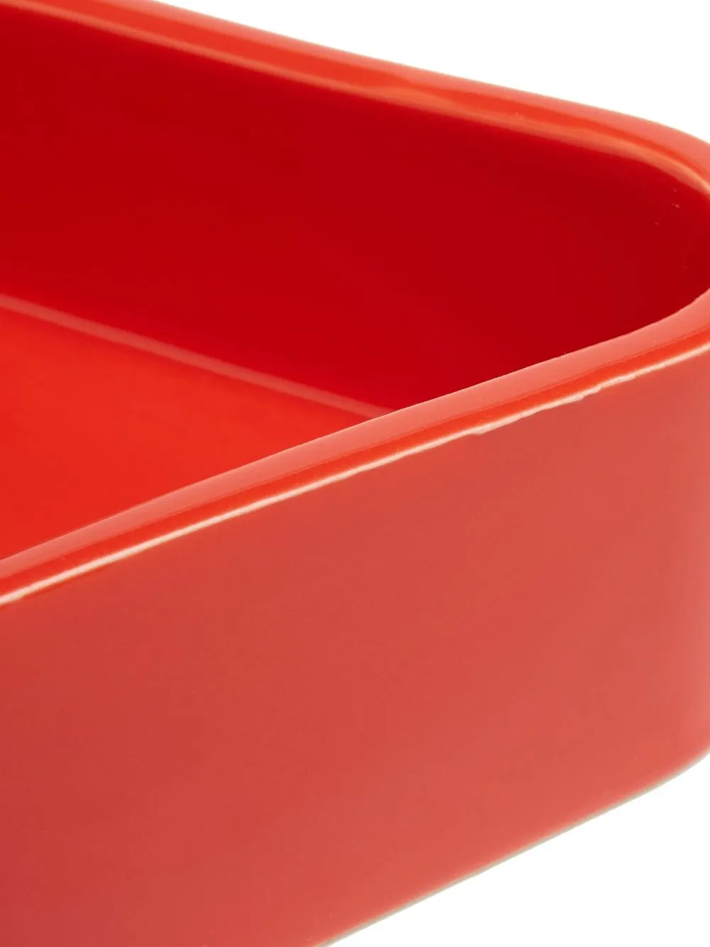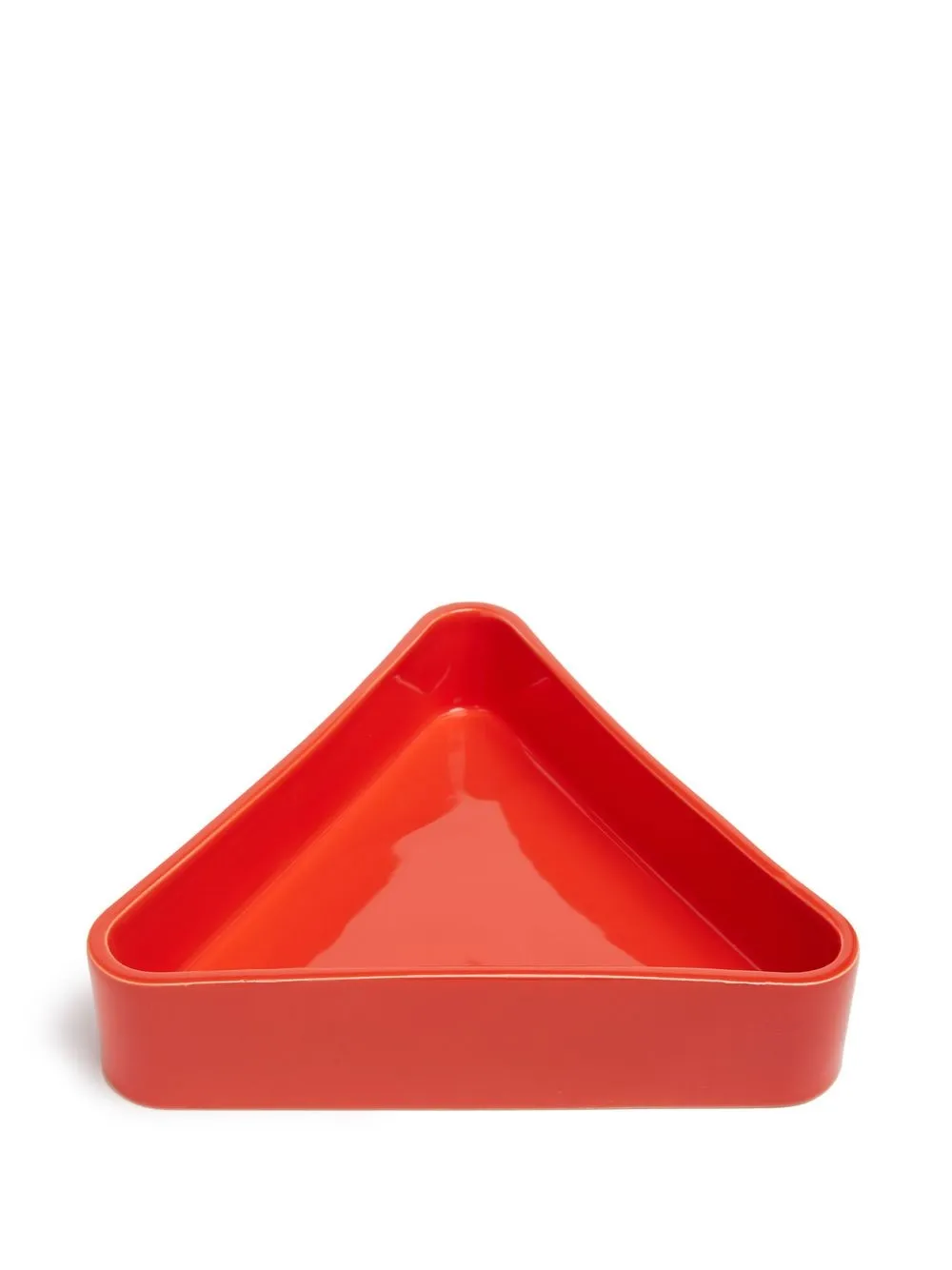 Ярко-красный, керамика, глазурованное покрытие и треугольная форма.