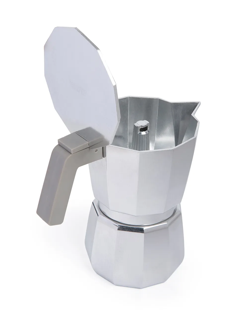 Кофеварка для эспрессо от Alessi. Панельный геометрический дизайн и отполированная отделка. Цвет: серебристый.