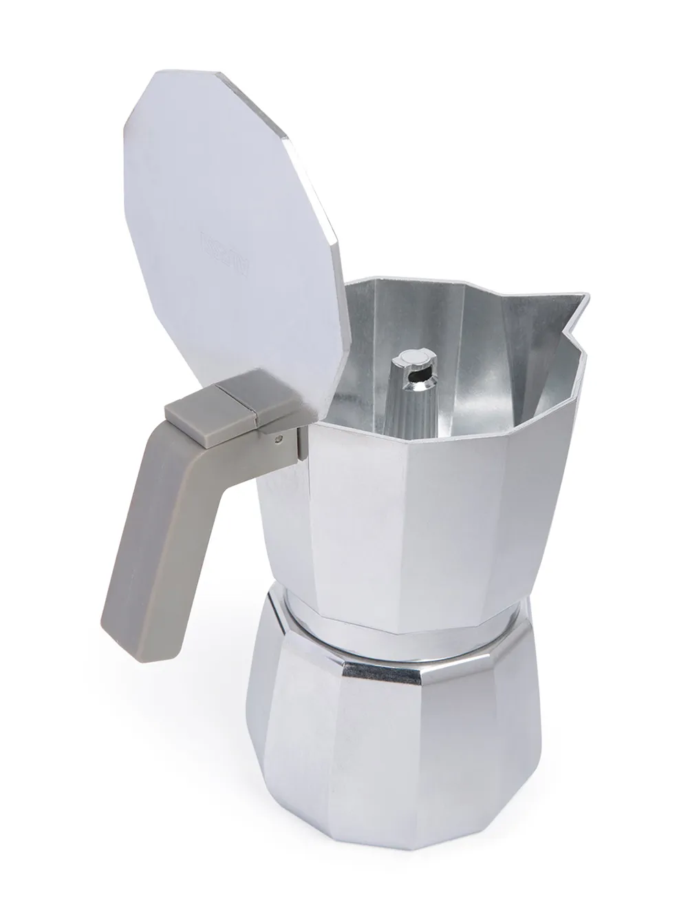 Кофеварка для эспрессо от Alessi. Панельный геометрический дизайн и отполированная отделка.