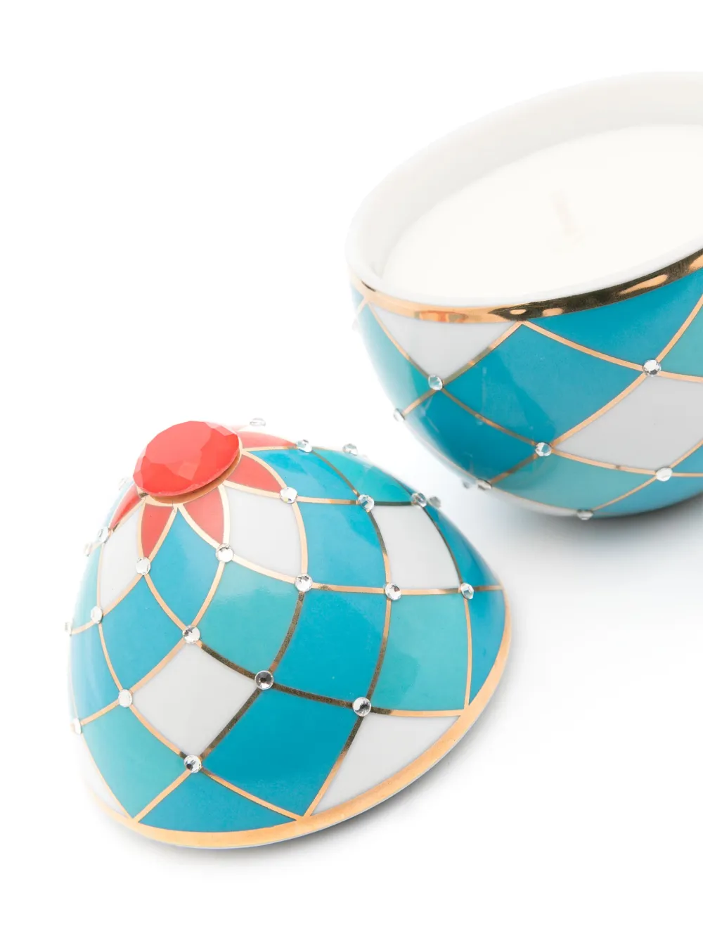 Подробнее о товаре: • Ароматические ноты: сандаловое дерево, мускатный орех, петигрейн, кедр, дубовый мох, кашемир • керамика/покрытие из 18-каратного золота/растительный воск • фитиль из хлопка • ручная роспись • принт с узором аргайл • украшения из горного хрусталя • время горения — 55 часов • 220 г • Этот товар доставят в подарочной упаковке. • Дополнительные сведения о размерах элемента см. на вкладке "Размер и крой".