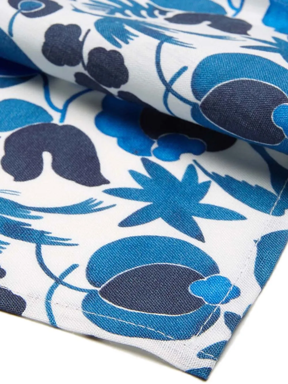 Синий/белый, лен, сплошной цветочный принт, прямоугольная форма и обработанные края. Ответственный выбор: Этот товар как минимум на 50% состоит из материалов, которые признаны более безопасными для окружающей среды или сертифицированы независимыми организациями.