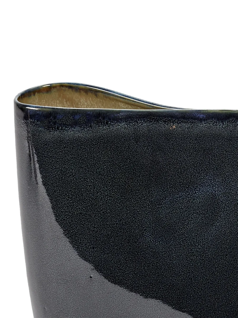 Темно-синий, керамика, глазурованное покрытие, асимметричная форма и дизайн с открытым верхом.
