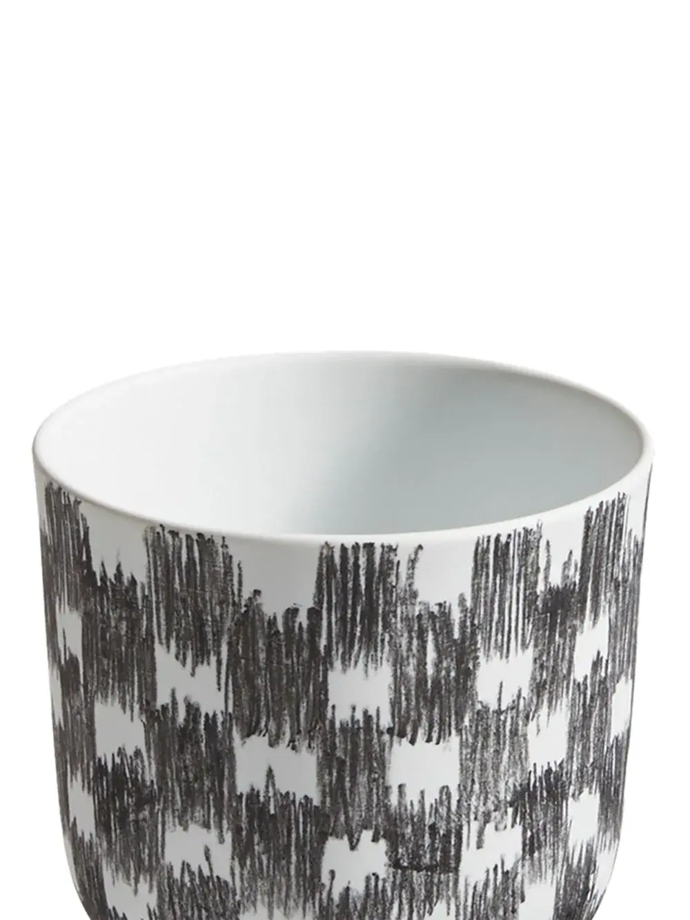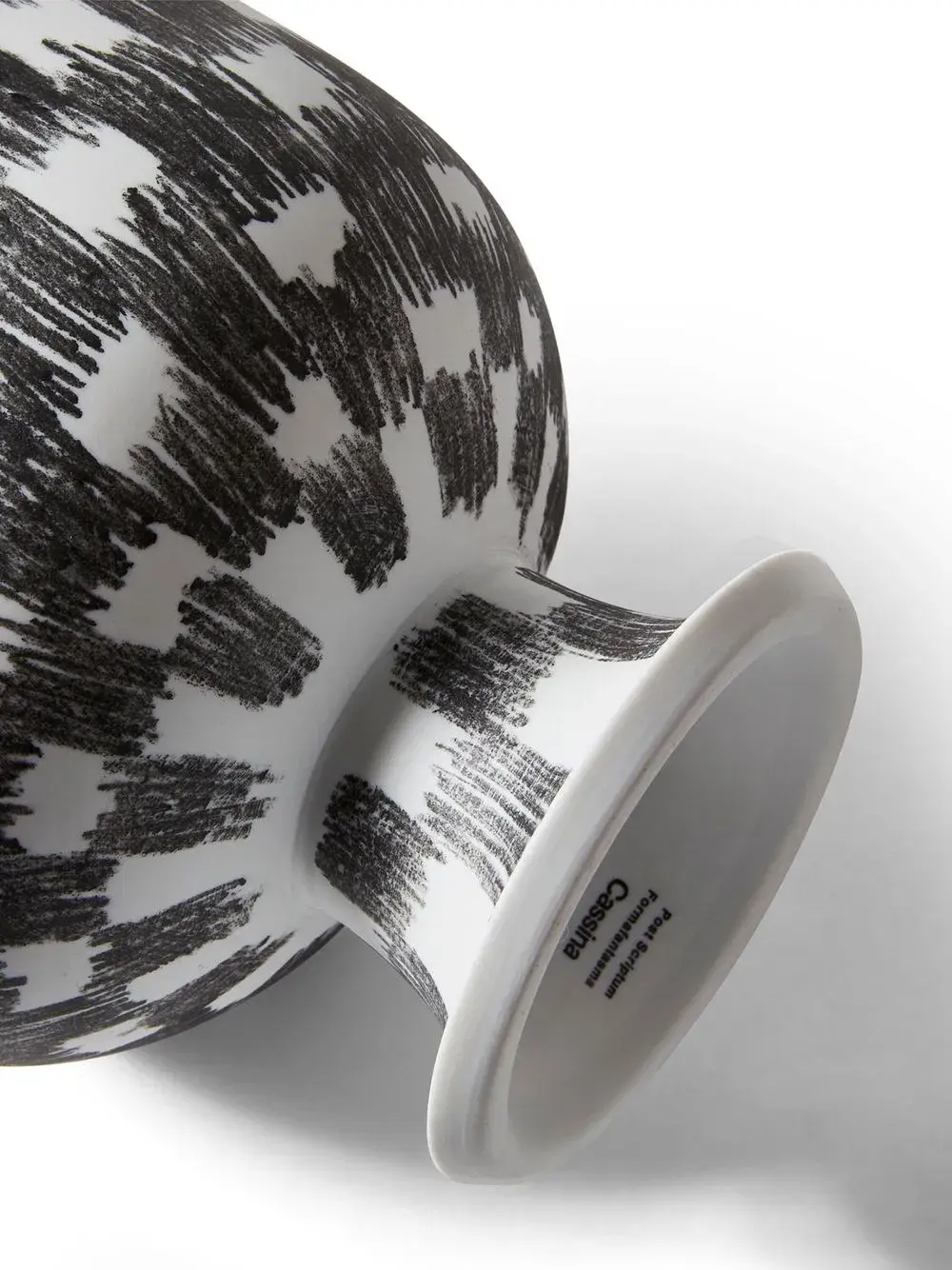Черный/белый, фарфор, абстрактный принт, ручная роспись, цилиндрический дизайн и дизайн с открытым верхом.