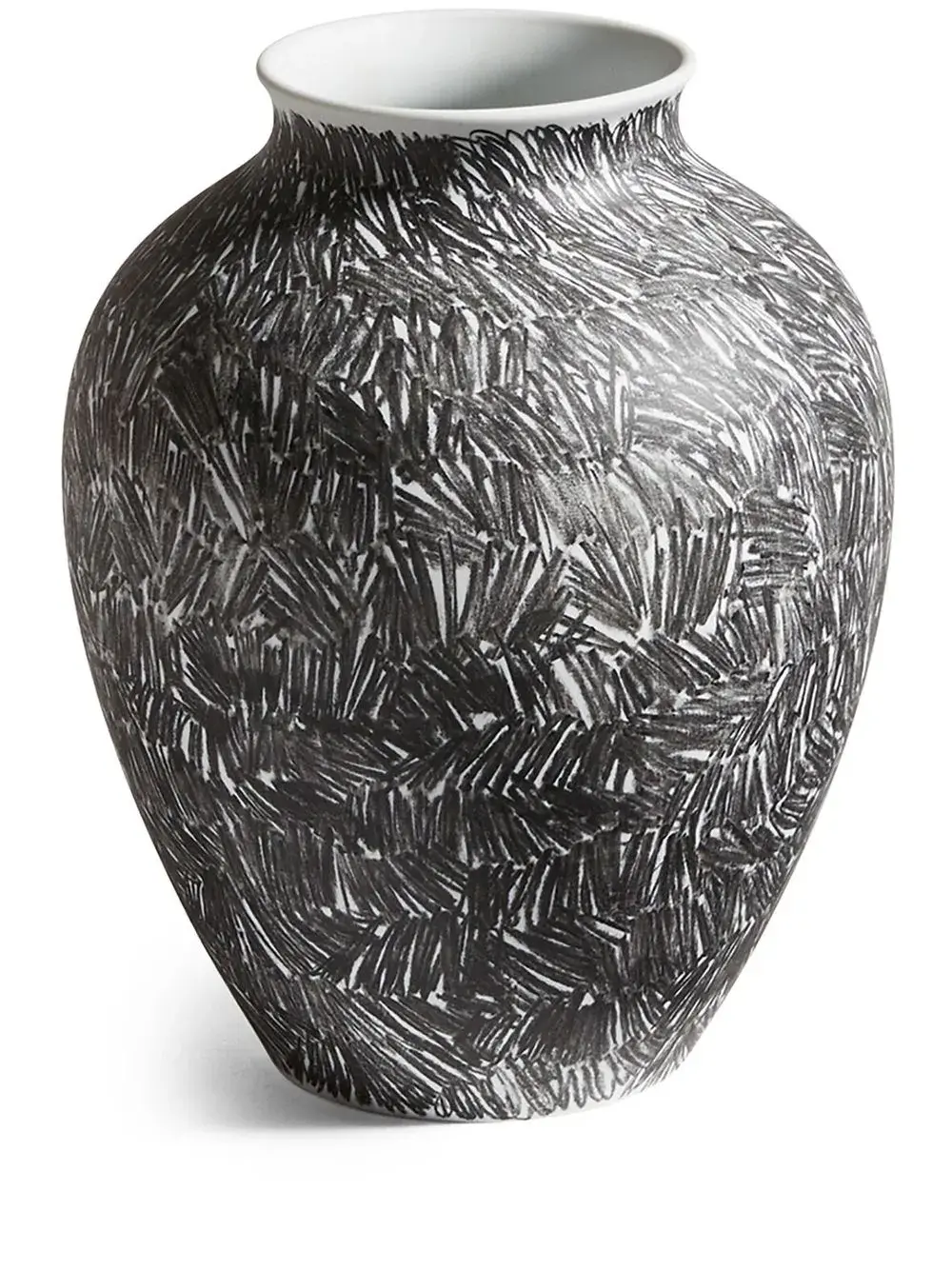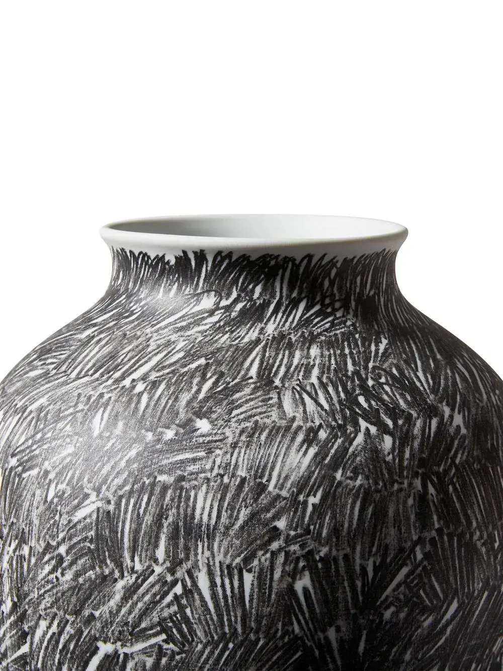 Черный/белый, фарфор, абстрактный принт, ручная роспись, цилиндрическая форма и дизайн с открытым верхом.