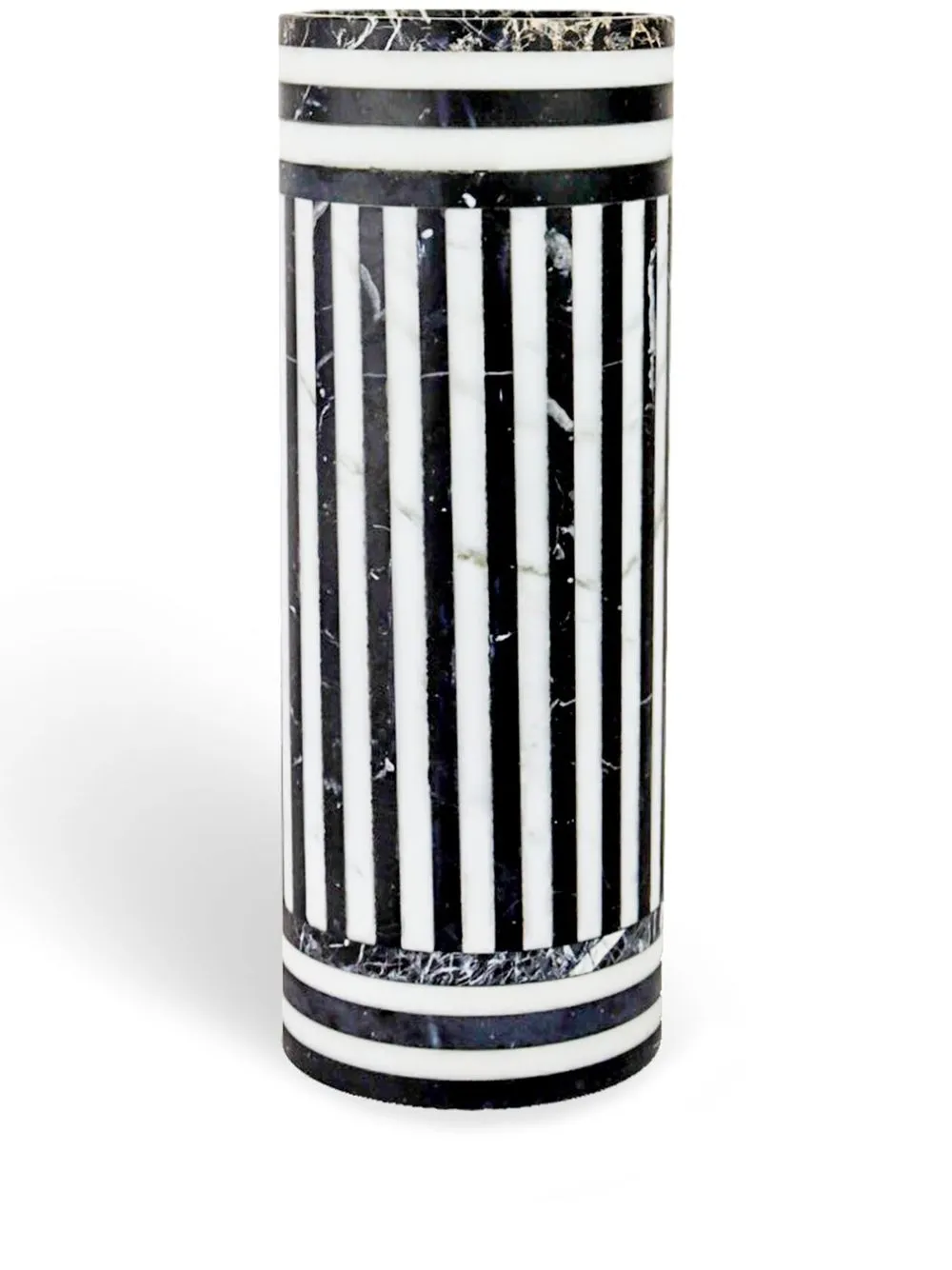 Черный/белый, мрамор, мраморный узор, узор в вертикальную полоску, узор в горизонтальную полоску и цилиндрическая форма.