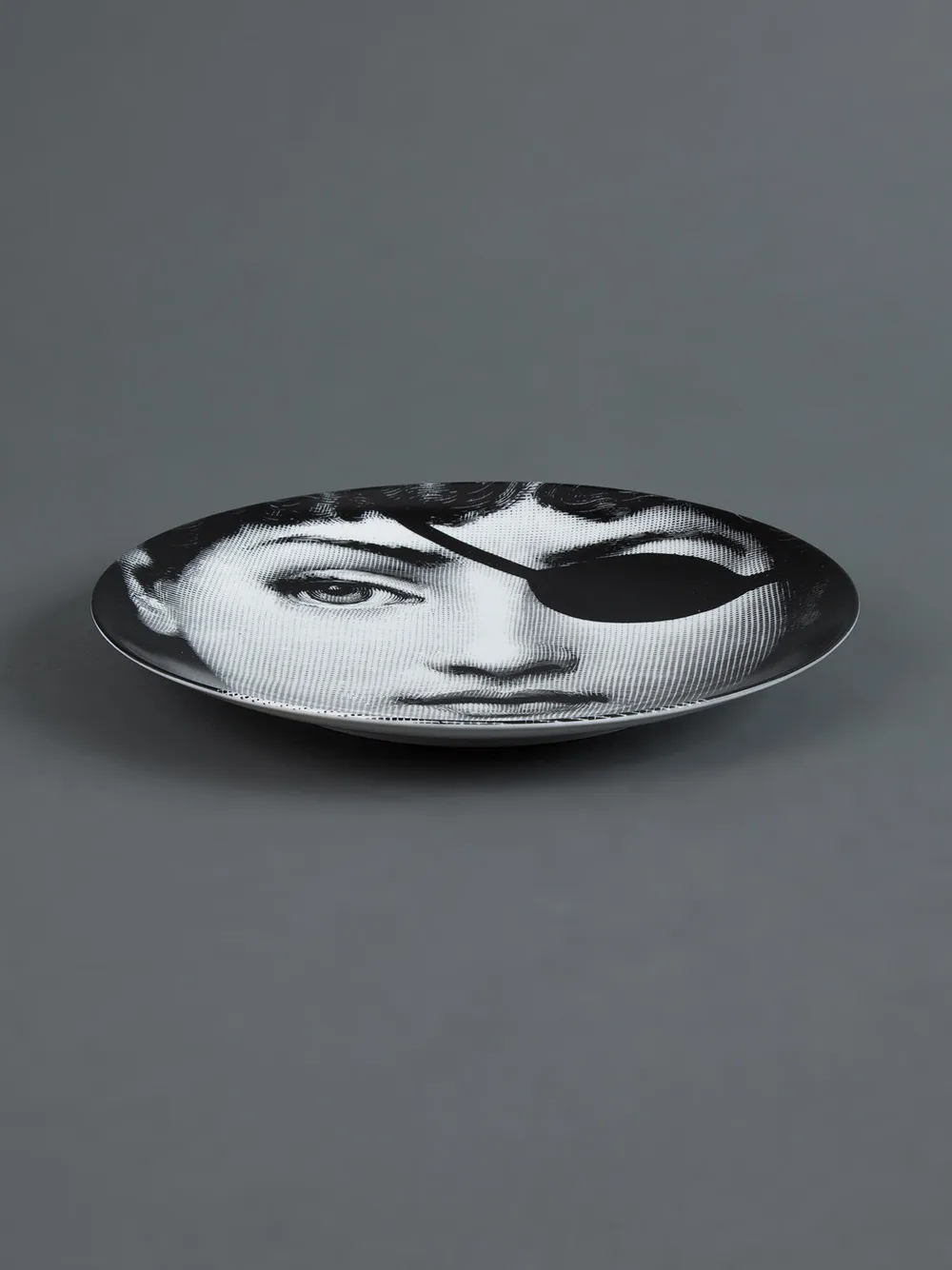Чёрно-белая фарфоровая тарелка с принтом от Fornasetti.