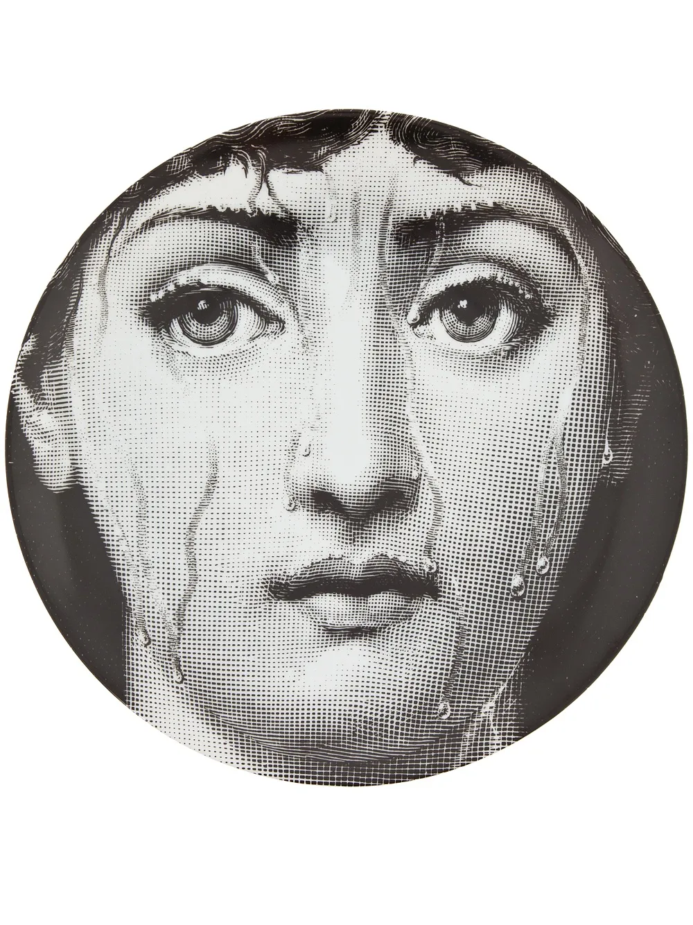 Чёрно-белая фарфоровая тарелка с рисунком от Fornasetti.