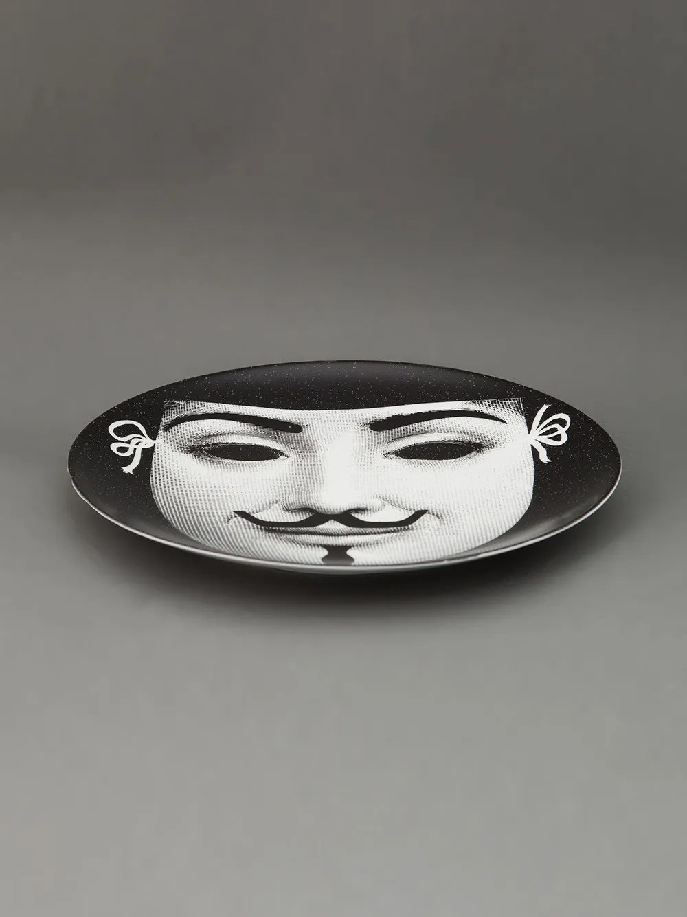 Черно-белая керамическая тарелка с принтом от Fornasetti.