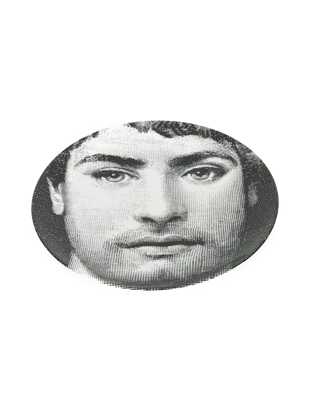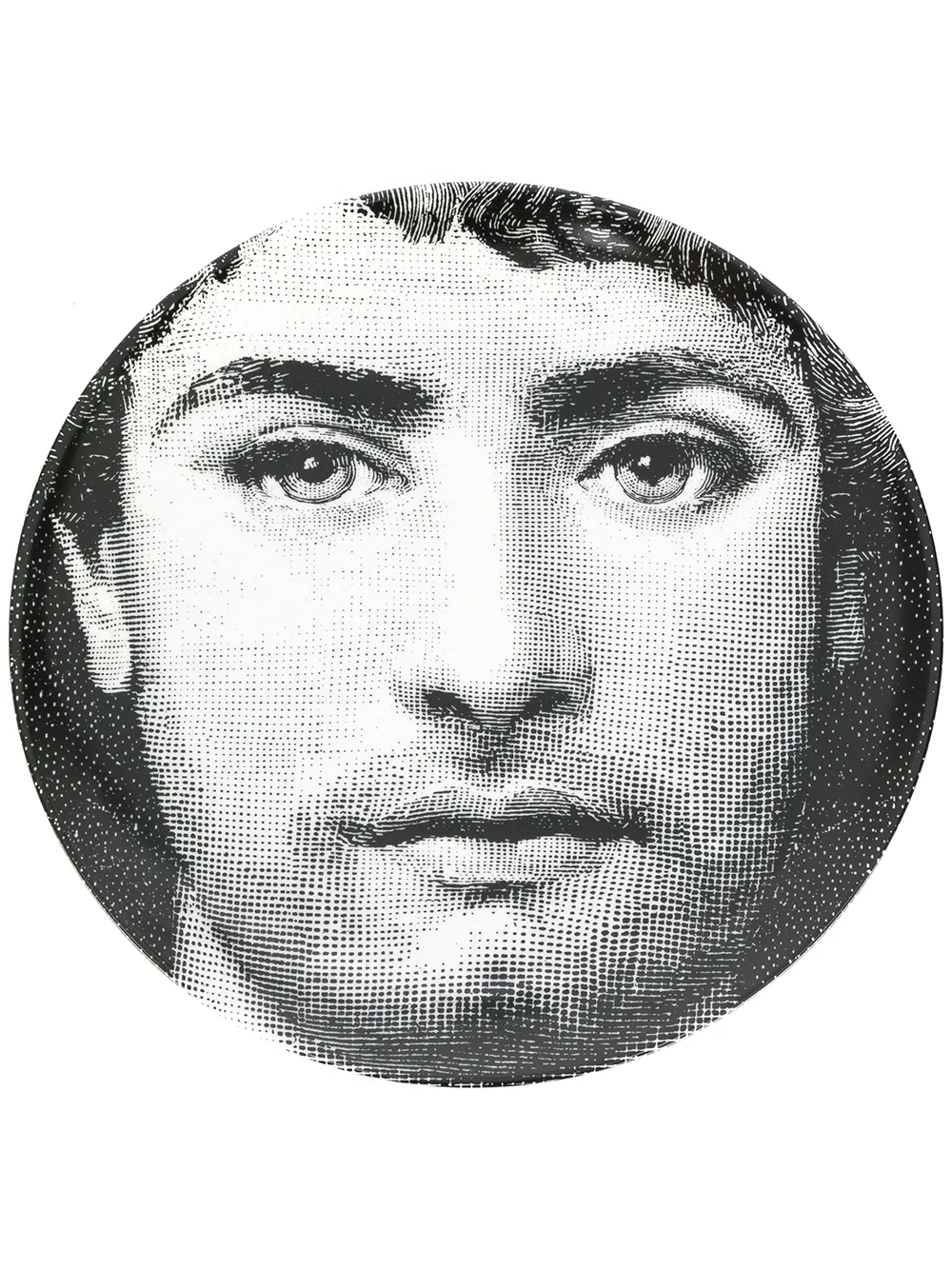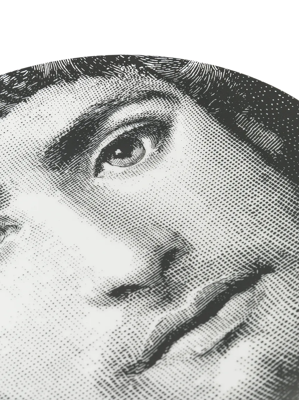 Черная с белым керамическая тарелка с принтом от Fornasetti.