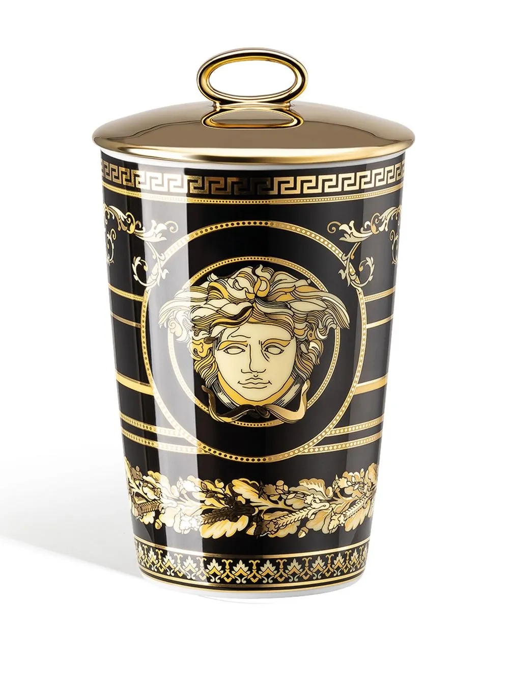 Черный, золотистый, фарфор, узор Medusa Head, узор в стиле барокко, фитиль из хлопка и крышка.