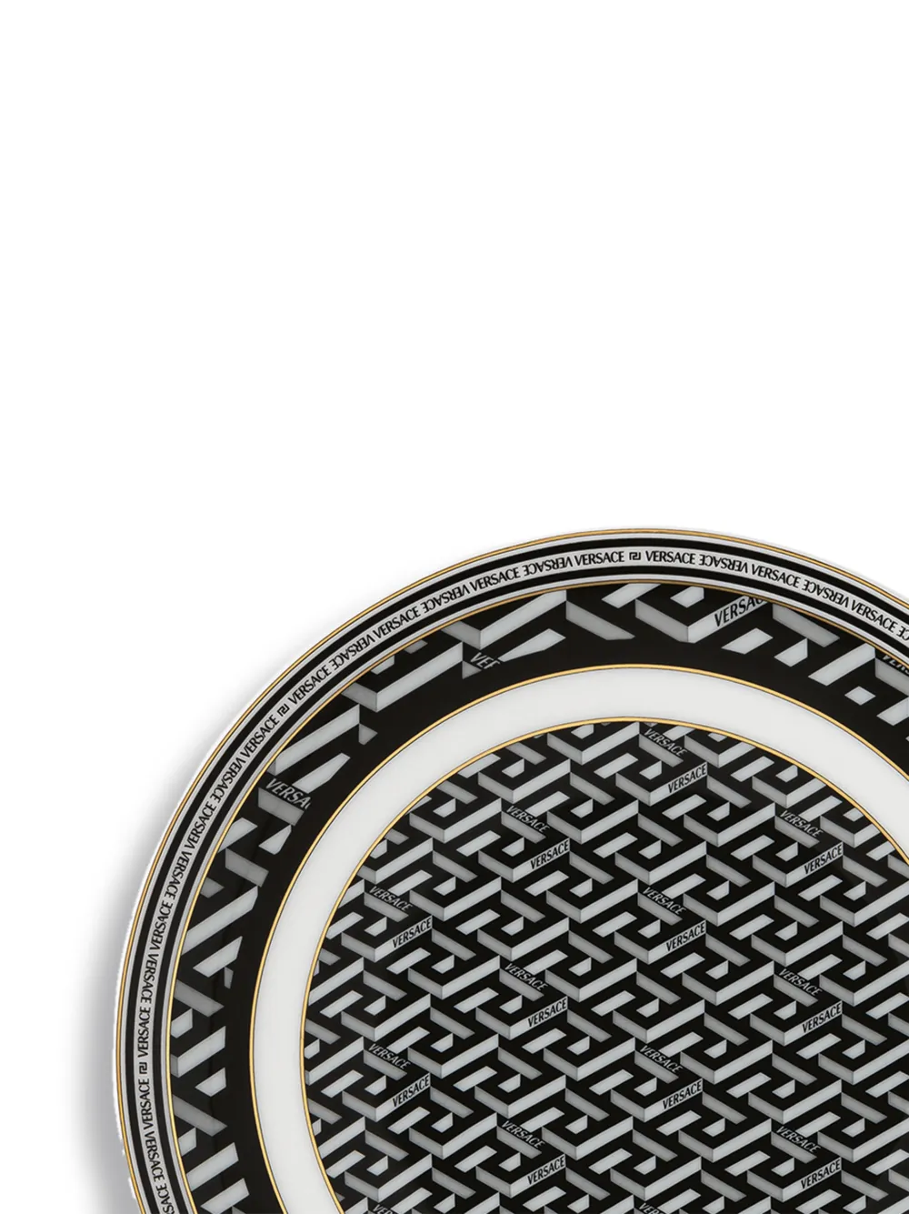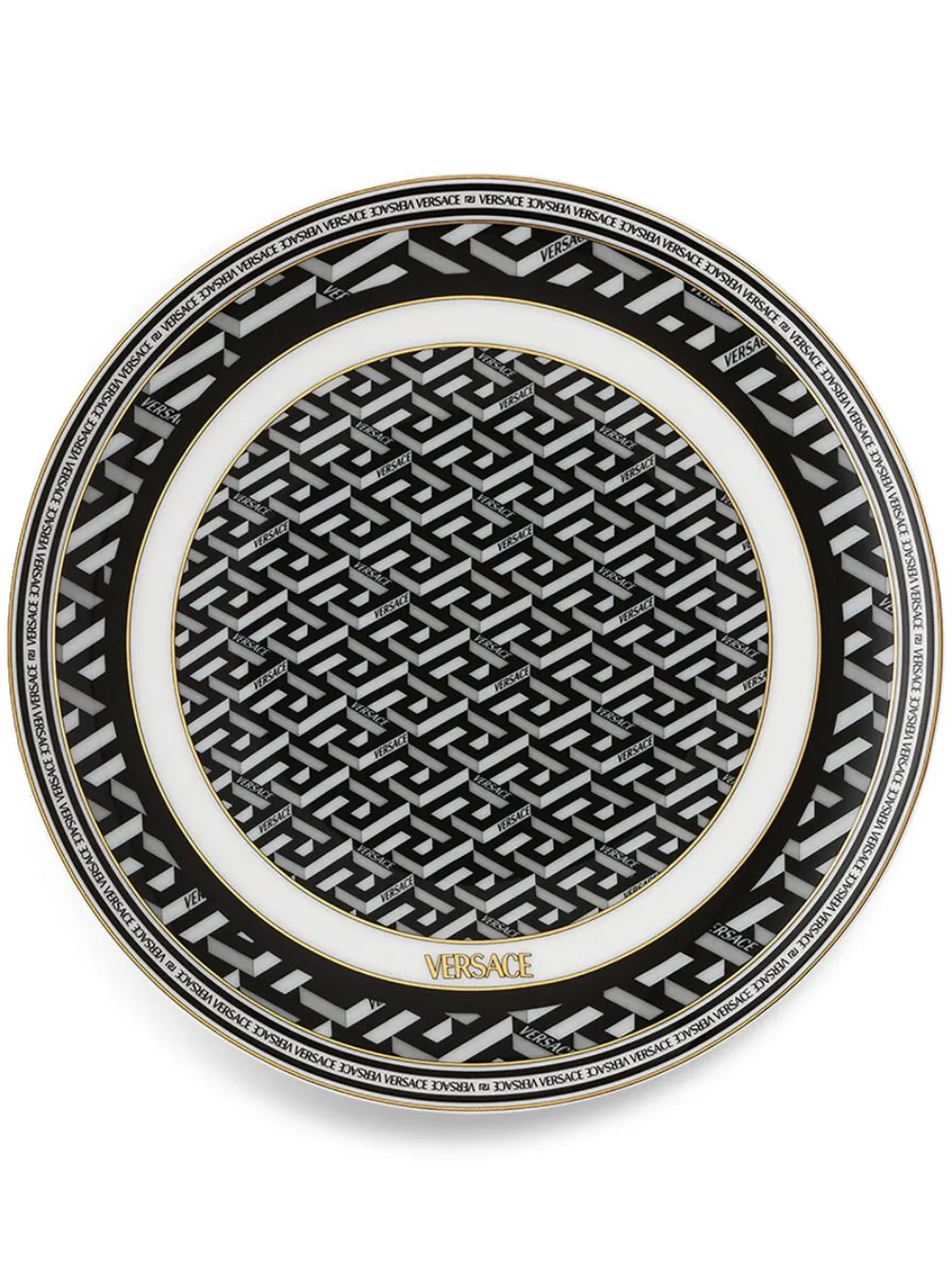 Черный/белый, фарфор, знаковый принт Greca, золотистый логотип и модель круглой формы.
