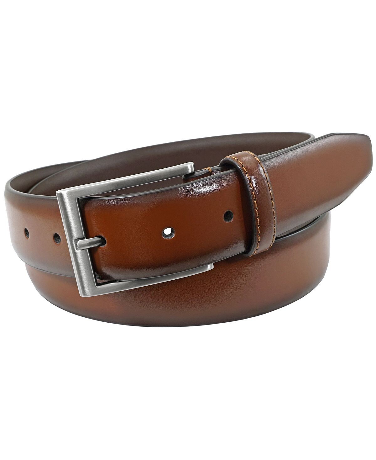 Ремень карминового цвета Florsheim станет прекрасным дополнением вашего модного гардероба. Этот кожаный деловой ремень имеет полированную отделку по краю перьев.