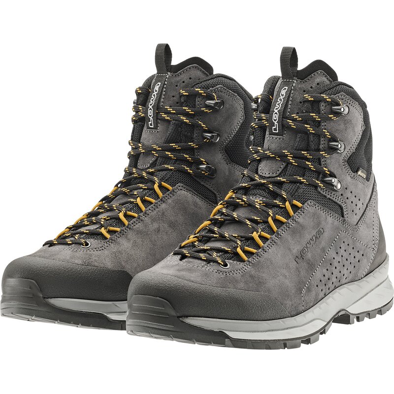 DELAGO GTX MID, являясь версией своего собрата средней высоты, обладает всеми преимуществами высококачественных треккинговых ботинок LOWA: перфорированный верх из прочной замши создает спортивный вид и передает спортивный характер ботинка. Благодаря минималистичной конструкции язычка и удобному текстильному воротничку, DELAGO GTX MID обеспечивает идеальную посадку и необходимую устойчивость и поддержку. Последнее также достигается благодаря износостойкому пяточному чехлу и жесткой резиноподобной защитной пленке в передней части стопы. Система шнуровки, вынесенная далеко вперед и состоящая из текстильных петель и легких крючков, позволяет индивидуально регулировать шнуровку в любой ситуации и подчеркивает спортивный характер ботинка. Инновационная система подошвы из гибкого материала LOWA DYNAPU+ и обновленная подошва Vibram, которая благодаря зоне CLIMBING ZONE также обеспечивает легкость прохождения скальных проходов, хорошо известны. Это делает DELAGO GTX MID идеальным вариантом для легких горных походов, более сложных восхождений в горах или многодневных походов с рюкзаком. Ботинки производятся в штаб-квартире LOWA в Йетцендорфе недалеко от Мюнхена с использованием традиционной клеевой конструкции и имеют сменную застежку.