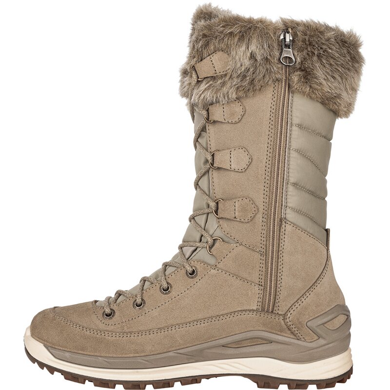 LOWA известна тем, что не идет на компромиссы, когда дело касается одного: посадки. Последняя модель ALBA EVO GTX W специально разработана с учетом анатомии женской стопы, чтобы обеспечить идеальную посадку. Верхняя часть ALBA EVO GTX W была адаптирована командой разработчиков LOWA для минимизации потенциального трения и идеального прилегания к икроножной мышце, не пережимая ее. Пушистый воротник из меха неживотного происхождения дополняет верх, умело добавляя визуальный акцент и способствуя удобной посадке. Говоря о комфорте: в ALBA EVO GTX W владельцы могут положиться на проверенное качество промежуточной подошвы LOWA DYNAPU, которая влита непосредственно в верх и, в дополнение к приятному амортизирующему перекату, обеспечивает необходимую устойчивость даже на неровной поверхности. Не проблема, если выпало несколько сантиметров снега — резиновая подошва LOWA имеет разнонаправленное расположение выступов и небольшой край пятки для надежного сцепления с землей даже на снегу и льду.