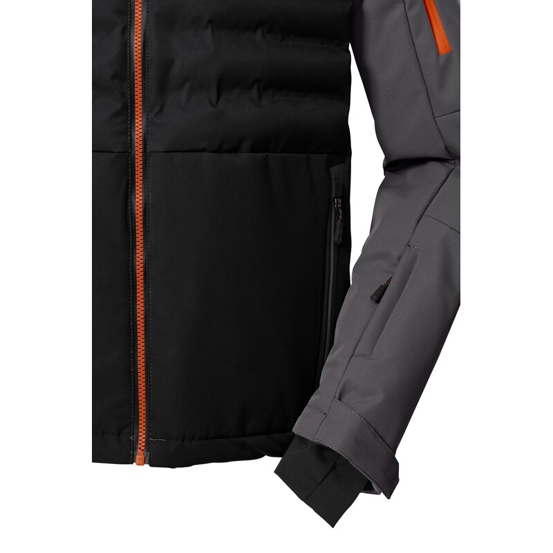 Эта мужская горнолыжная куртка от killtec впечатляет своим современным гибридным дизайном и функциональностью. Сочетание материалов, проклеенные перегородки и дизайн с цветовыми блоками поражают воображение. Куртка ветро- и водоотталкивающая (гидростатическое давление 10 000 мм) и дышащая (паропроницаемость 3000 г/м²/24 ч). Все важные швы проварены. Нескользящая снежная юбка защищает от ветра и холода. Многочисленные карманы позволяют разместить ски-пасс, горнолыжные очки и другие вещи. Регулируемые манжеты из лайкры с отверстиями для больших пальцев. Капюшон регулируется и при необходимости отстегивается. Водонепроницаемая передняя молния оснащена защитой подбородка от защемления кожи. Эта куртка пропитана средством без ПФАС и частично изготовлена из переработанного материала.