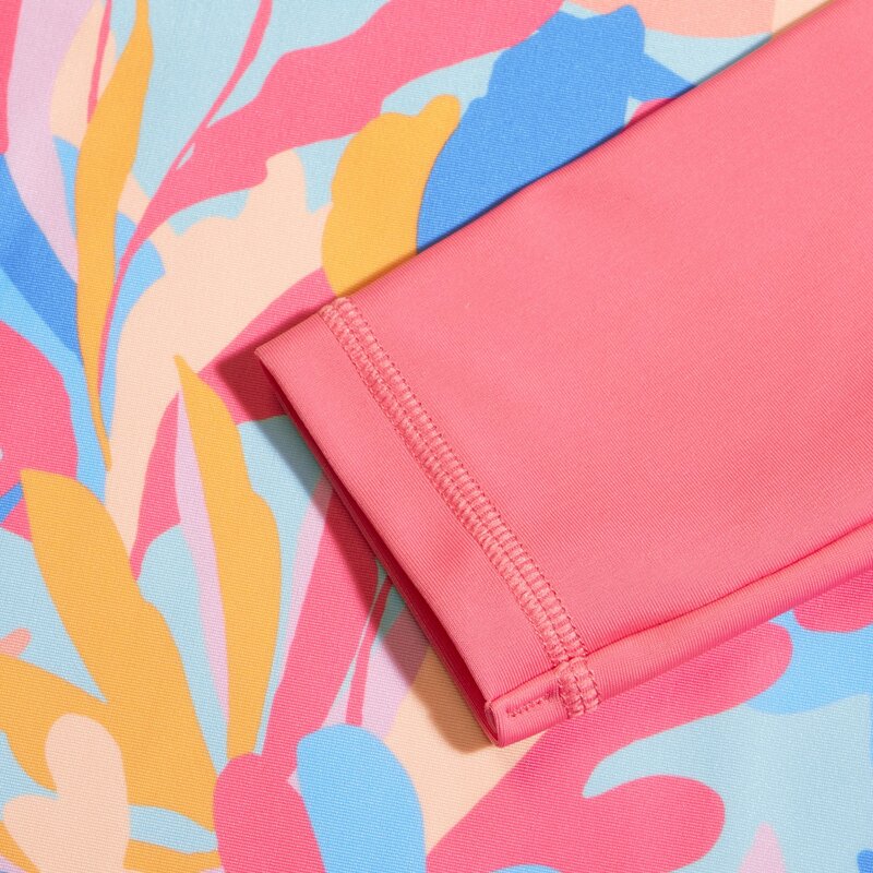 Этот красочный рашгард с длинными рукавами источает летнее настроение благодаря красивому растительному принту в пастельных тонах, выжженных солнцем, и контрастным розовым рукавам. Удобный рашгард, который легко надевать, обладает защитой от солнца UPF 40+ для защиты от солнца как в воде, так и на суше. Наша ткань EnduraBrite, которая подходит как для пляжа, так и для бассейна, обладает большей устойчивостью к хлору, чем традиционные ткани для купальников, а также превосходно сохраняет цвет, а технология CREORA HighClo помогает ей дольше сохранять свежесть. Изготовленный частично из переработанных пластиковых бутылок, полиэстеровая пряжа в ткани EnduraBrite на 100% состоит из переработанных отходов потребления.