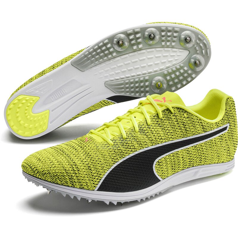 Кроссовки PUMA evoSPEED Distance 8 — это тренировочные кроссовки для бега по лёгкой атлетике на дистанции от 800 м до 10 км. Трикотажный верх имеет аэродинамическую форму торпеды, а интегрированная замшевая поддерживающая конструкция обеспечивает дополнительный комфорт при ношении босиком. Полноразмерная промежуточная подошва из материала EVA поддерживает каждый шаг, а подошва обеспечивает дополнительный импульс: интегрированная технология PUMA EverTrack+ обеспечивает особый комфорт и более плавное перекат, а пластина Pebax с пятью шипами на подошве гарантирует отличное сцепление с поверхностью и полное сцепление.