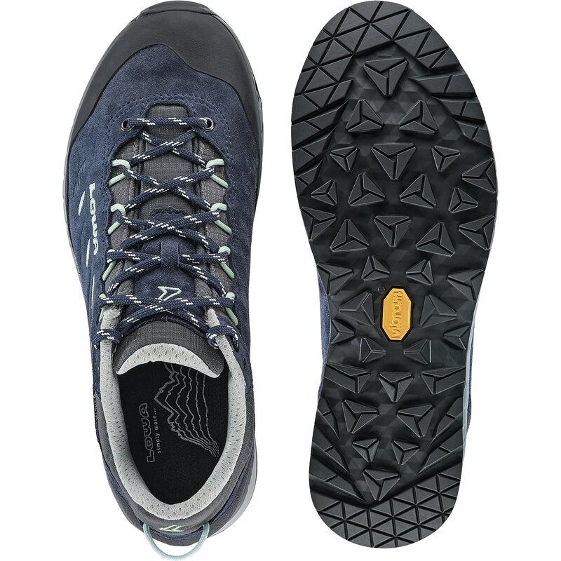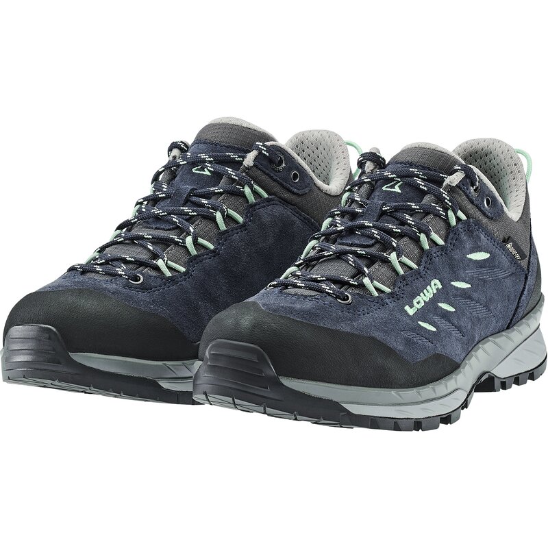 DELAGO GTX LO Ws — это легкие, функциональные и, прежде всего, низкие ботинки с застежкой, которые четко подчеркивают их предназначение в горах. Благодаря спортивному дизайну, резиновому носку, гибким петлям для шнуровки для индивидуальной подгонки ботинка по ноге в зависимости от ситуации, а также сочетанию подошвы Vibram и промежуточной подошвы LOWA DynaPU эта обувь стала хитом среди всех любителей горного спорта на открытом воздухе.