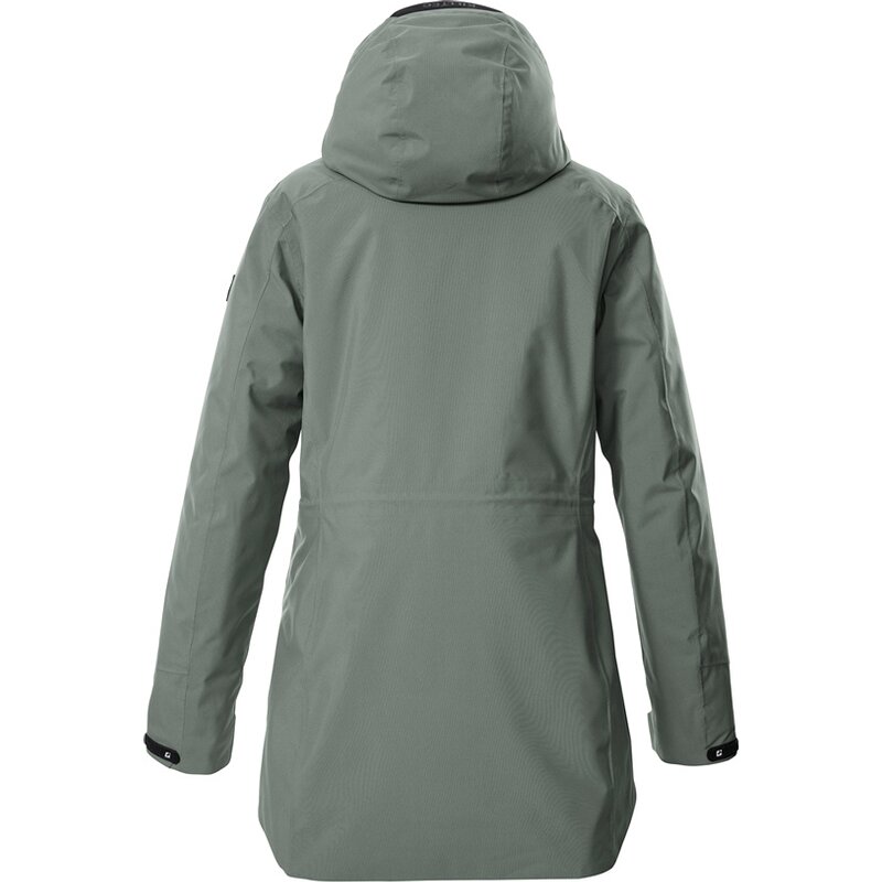 Эта женская функциональная парка от killtec впечатляет своим вневременным дизайном и функциональностью. Проклеенные швы и гидростатическое давление 10 000 мм делают её водонепроницаемой и ветрозащитной (наш совет: периодически пропитывайте парку пропиткой). Парка также дышащая, паропроницаемость составляет 3000 г/м²/24 ч. Манжеты регулируются с помощью застёжек-липучек. Скрытая двухсторонняя молния расстёгивается сверху и снизу, обеспечивая свободу движений. Ширина капюшона и талии регулируется шнурками. Два застёгивающихся боковых кармана и внутренний карман обеспечивают достаточно места для хранения. Эта парка не содержит ПФАС и частично изготовлена из переработанного материала.