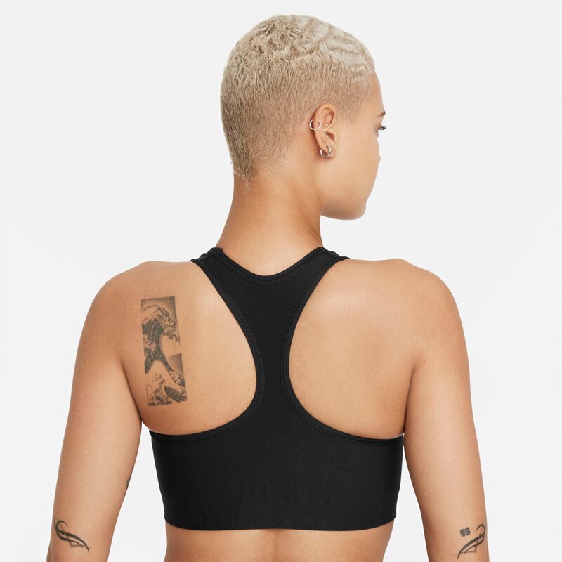 Nike Dri-FIT Swoosh Seamless Women's Medium-Support 1-Piece Pad Sports Bra ПЛАВНАЯ ПОДДЕРЖКА. Благодаря широким удобным лямкам и практически бесшовной конструкции бесшовный спортивный бюстгальтер Nike Dri-FIT Swoosh обеспечивает комфорт и надежную фиксацию во время движения. Гладкая и легкая ткань отводит пот, помогая вам оставаться сухим, комфортным и сосредоточенным. При каждом повторении, шаге и прыжке вы можете рассчитывать на поддержку. Сухой и прохладный Технология Nike Dri-FIT отводит пот от тела для более быстрого испарения, помогая вам оставаться сухим и комфортным. Дышащая замочная скважина спереди пропускает прохладный воздух. Мягкий и гладкий Трикотажная ткань с почти бесшовной конструкцией мягкая и гладкая на ощупь. Регулируемый и удобный Съемная цельная подкладка регулируется и складывается для надежной и удобной посадки. Карман для подкладки открывается сверху и вмещает телефон.
