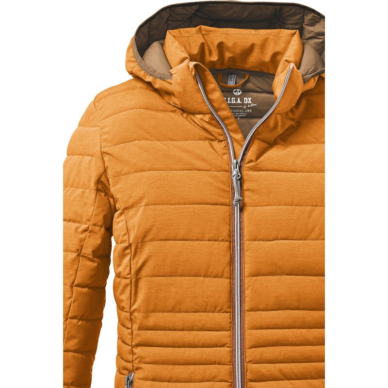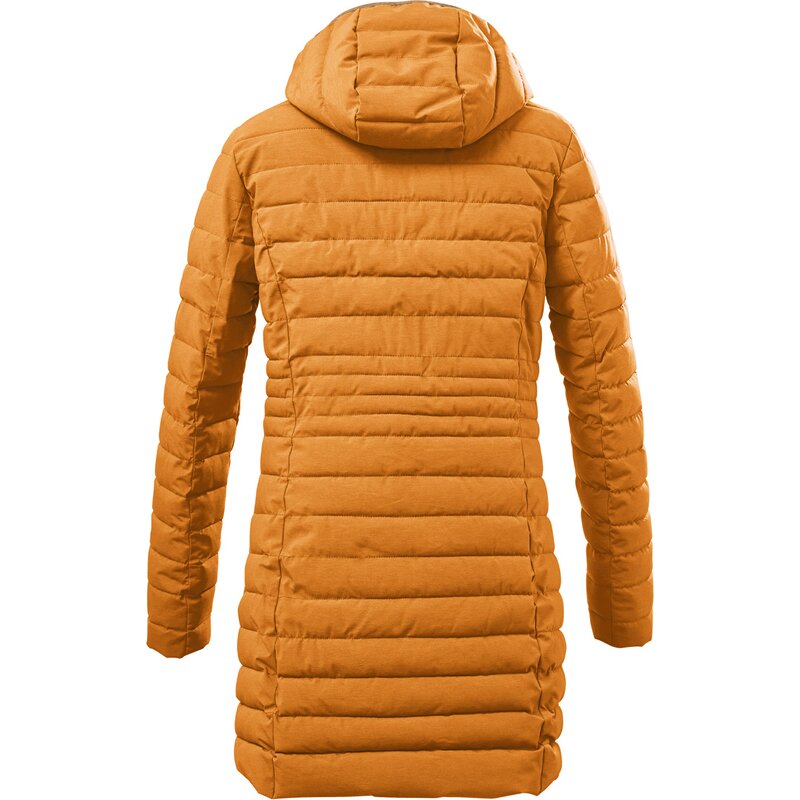 Женская функциональная парка с эффектом пуха от GIGA DX впечатляет облегающим кроем и подчеркивающей фигуру стёжкой. Стёганая парка водоотталкивающая и ветронепроницаемая (гидростатическое давление 8000 мм), а также дышащая. Отстёгивающийся капюшон на молнии и высокий воротник-стойка обеспечивают дополнительную защиту от ветра и дождя. Два боковых кармана застёгиваются на молнии. Двусторонняя молния расстёгивается сверху и снизу, обеспечивая свободу движений. Парка также оснащена практичной защитой подбородка. Для killtec особенно важно делать свои коллекции более экологичными и актуальными в будущем. Поэтому killtec уделяет всё больше внимания ответственным производственным процессам. Поэтому эта парка пропитана веществами, не содержащими фтора.